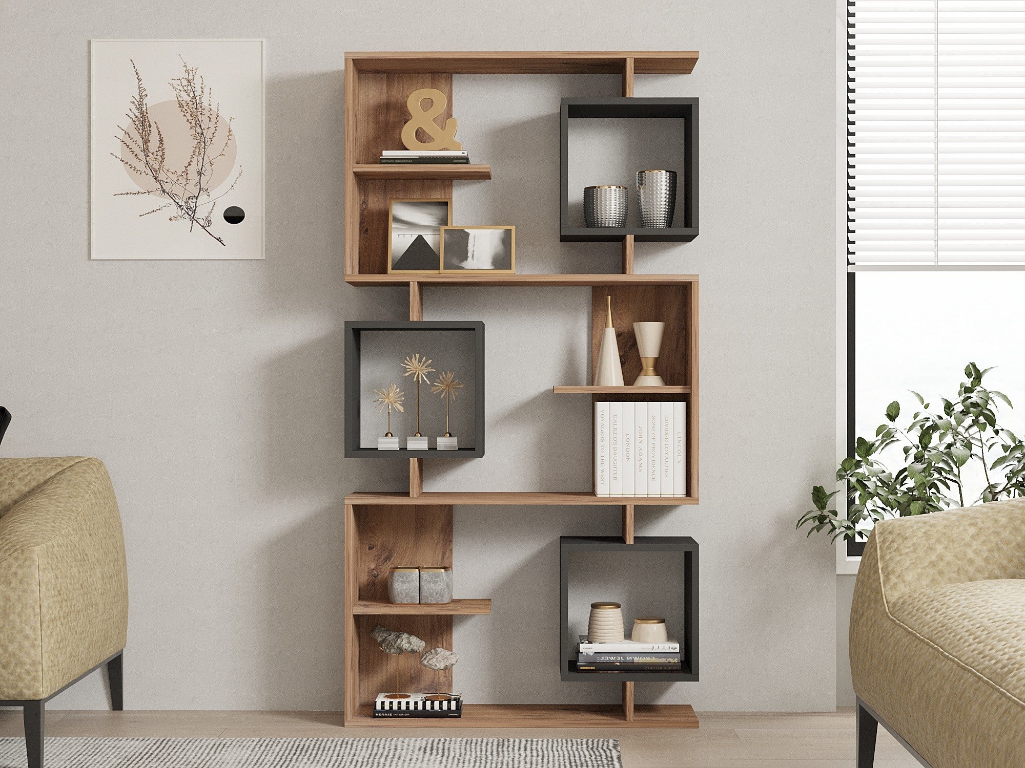 Ez a könyvespolc 100% melaminbevonatú forgácslapból készült, így tartósnak készült. A 18 mm-es vastagsága biztosítja a robusztusságot és a stabilitást, így kedvenc könyveidet és dísztárgyaidat nyugodtan kiállíthatod. Az atlanti fenyő és az antracit szín kombinációja kifinomultságot kölcsönöz, így tökéletes kiegészítője lehet bármilyen modern vagy hagyományos dekorációnak.