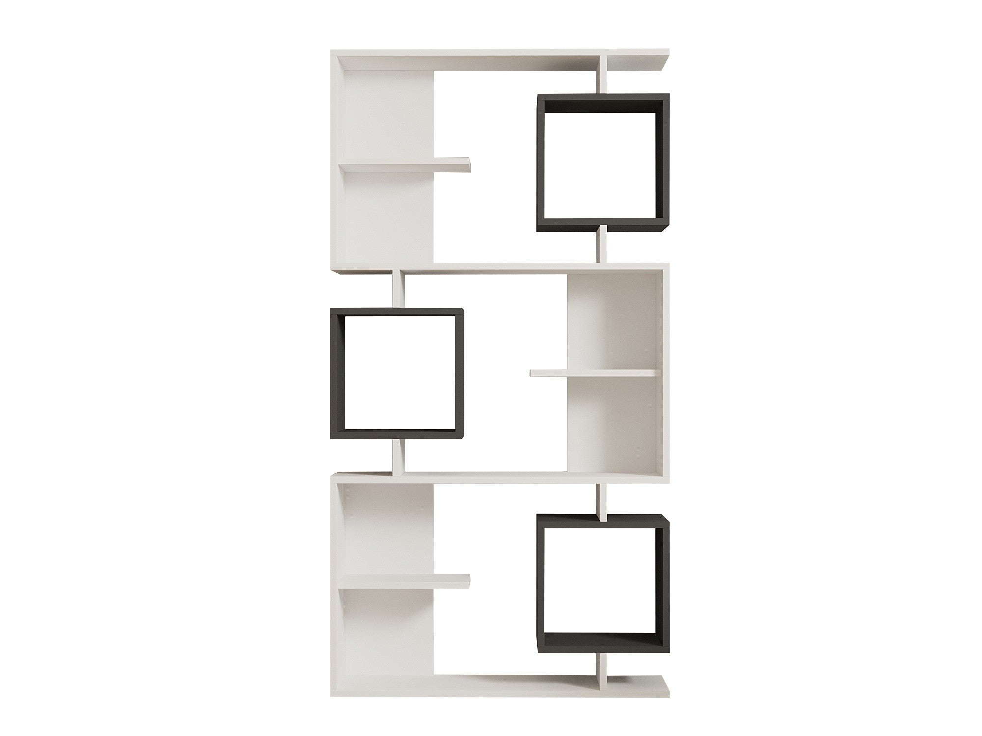 A fehér és antracit színek kombinációja modern és kifinomult megjelenést kölcsönöz ennek a könyvespolcnak, amely könnyedén illeszkedik bármilyen dekorációs stílushoz. Akár a minimalista, akár az eklektikus esztétikát kedveli, ez a könyvespolc zökkenőmentesen illeszkedik majd a térbe, eleganciát és bájt kölcsönözve neki.