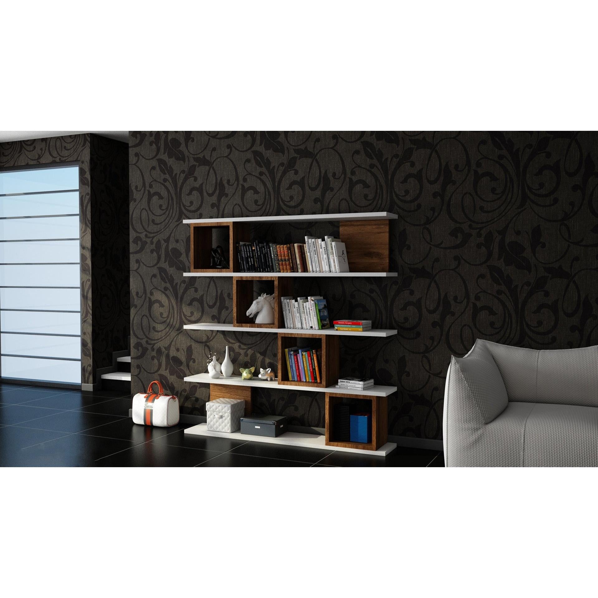 A könyvespolc a fehér és a diófa szín gyönyörű kombinációjával rendelkezik, amely eleganciát és kifinomultságot kölcsönöz a helyiségének. Ez a sokoldalú színösszeállítás könnyedén kiegészít bármilyen lakberendezési stílust, így időtálló kiegészítője lesz otthonának.
