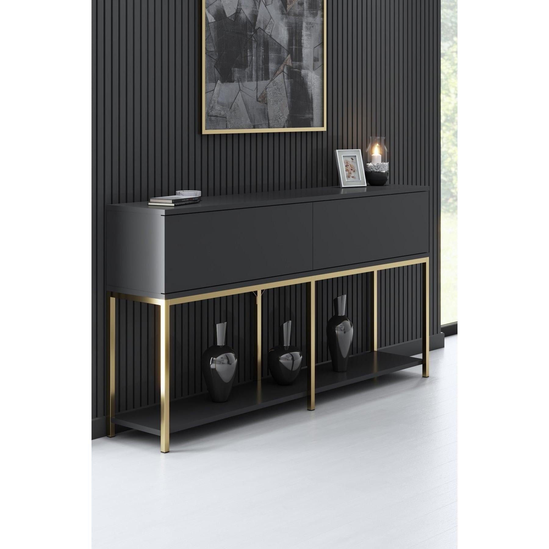 Képzelje el, hogy sétáljon otthonába, és üdvözölje ezt a finom konzolot, a karcsú kialakítását és a vonzó színeket azonnal megragadja a figyelmét.Az antracit és az arany kombinációja elbűvölő kontrasztot teremt, ami az opulencia és a nagyság érzetét idézi elő.