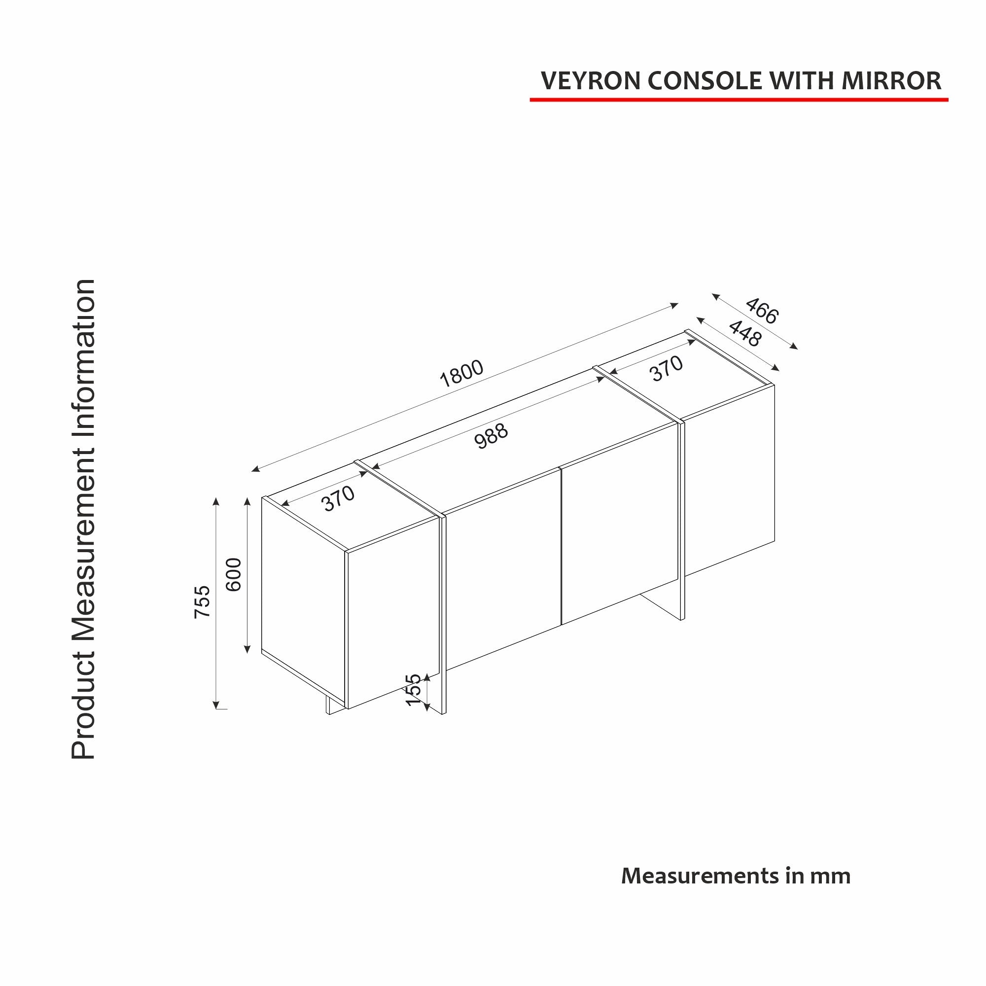 A konzol erős lábakon áll, 15,5 cm magasságban, stabilitást és támogatást biztosítva az összes elemhez. Függetlenül attól, hogy a nappaliban, a folyosón vagy a hálószobában használja, ez a konzol minden bizonnyal nyilatkozatot tesz, és a szoba fókuszpontjává válik.