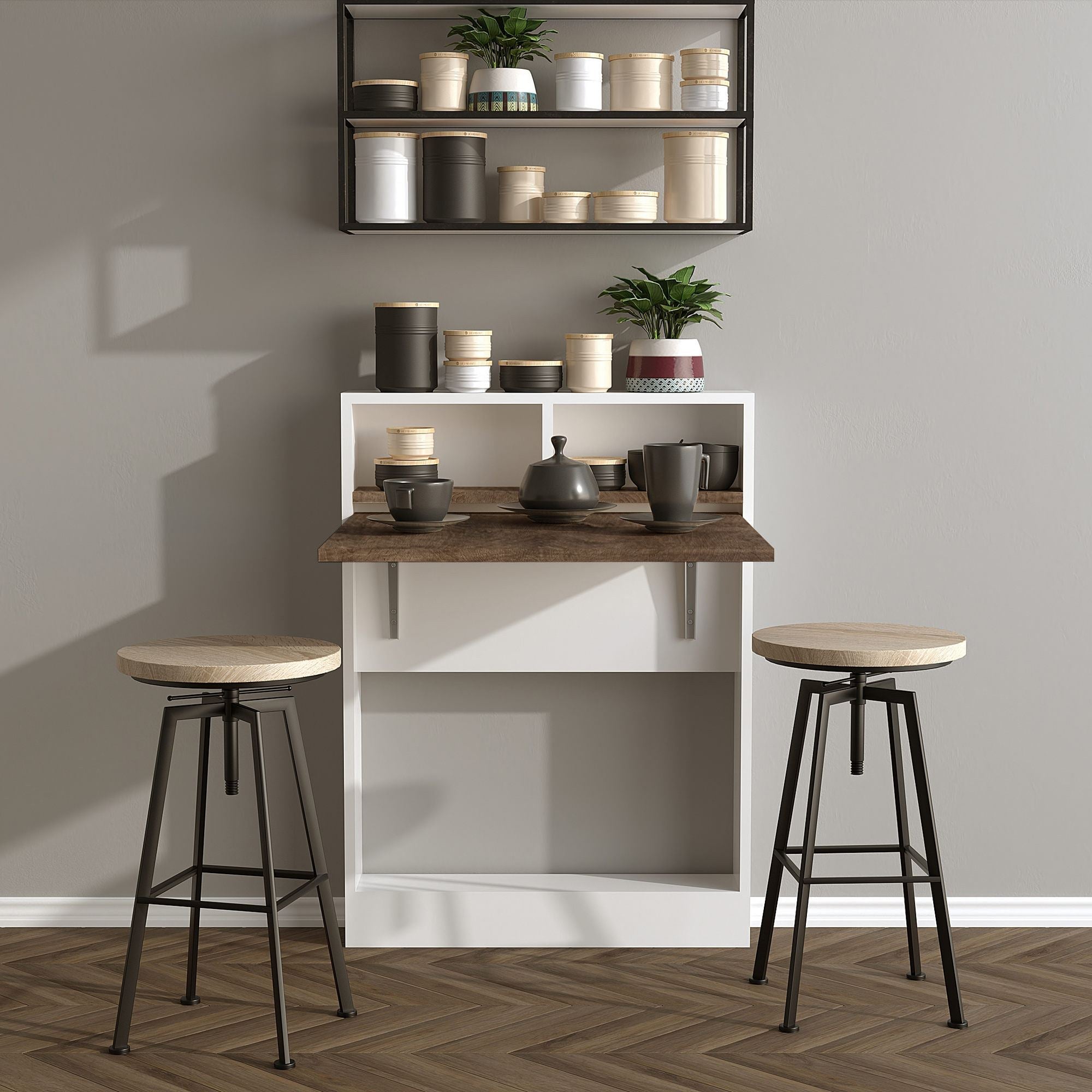 Búcsúzzon el a rendetlenségtől a számos polcnak köszönhetően, amely az Összecsukható Asztalhoz tartozik. Akár extra tárolóra van szüksége könyvek, dekoráció vagy irodai kellékek számára, ez az asztal megoldja a problémát. Ráadásul a falra rögzítési lehetőség extra biztonságot és stabilitást ad.