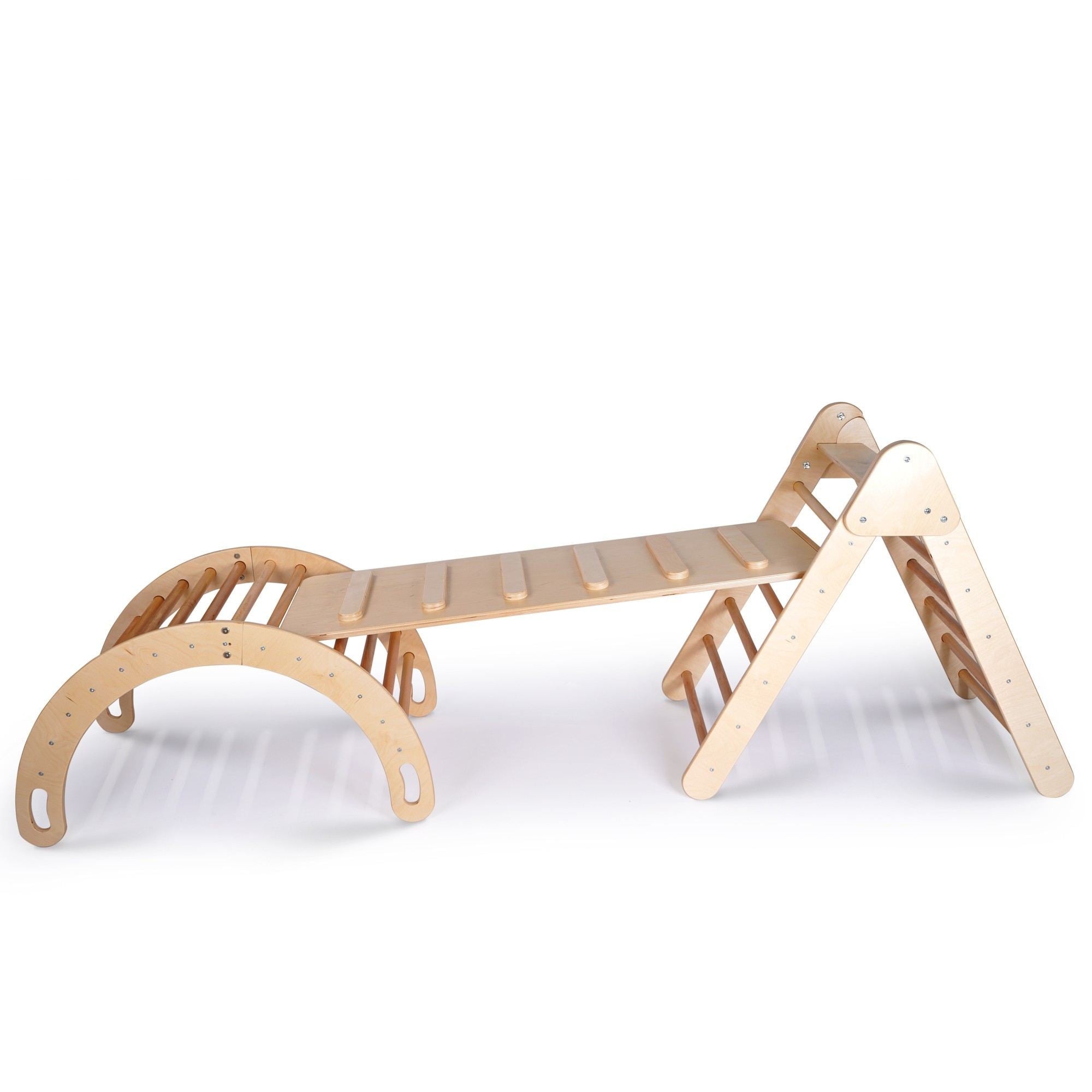 A szettben található háromszög mászó, rámpa és mászó ív végtelen lehetőséget biztosít gyermekének a nagymotoros készségek fejlesztésére és az önbizalom növelésére. Figyelje, ahogy új magasságokba mászik, és könnyedén legyőzi az új kihívásokat.