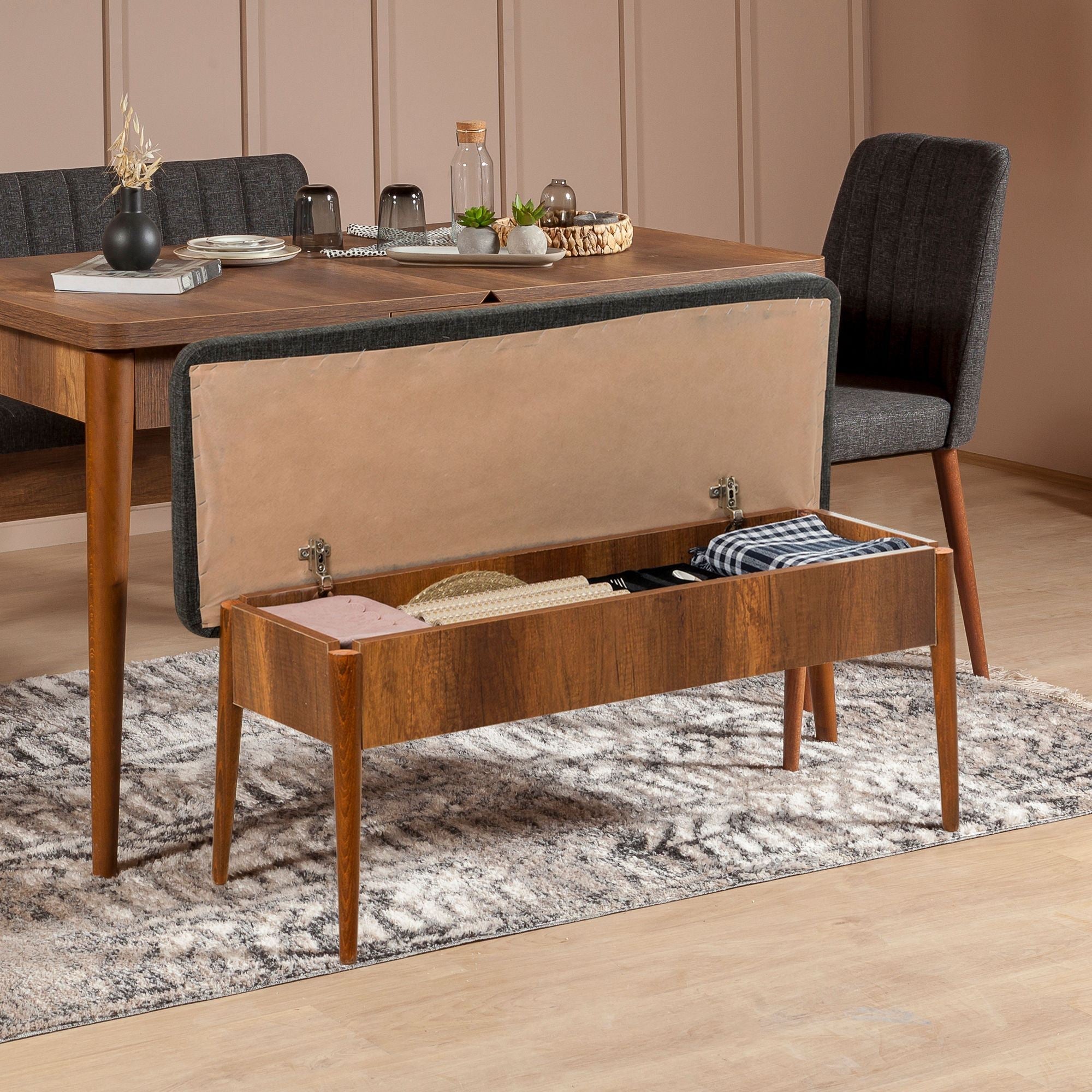 A tárolóegységgel együtt ez a pad nemcsak stílusos ülőhely, hanem praktikus tárolási megoldás is. A 18 mm-es vastagság biztosítja a stabilitást és tartósságot, így tökéletes a mindennapi használatra.