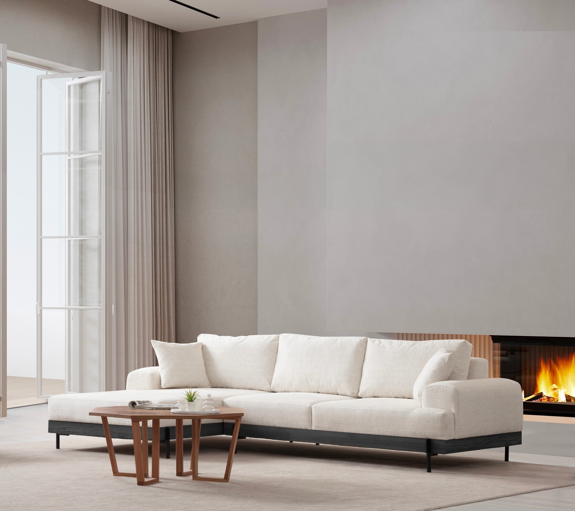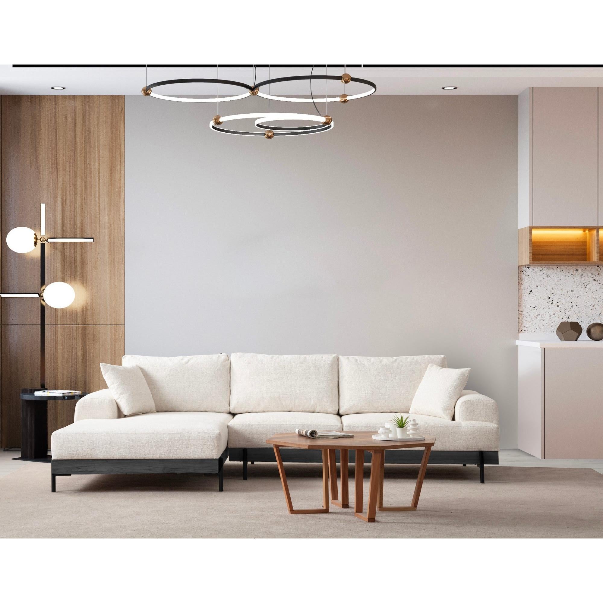 Sarokkanapénk nemcsak páratlan kényelmet biztosít, de egy csipetnyi kifinomultságot is kölcsönöz bármely lakótérnek. A karcsú dizájn, amelyet a fekete fém lábak egészítenek ki, eleganciát és modernitást sugároz. A kanapé fehér színe(i) könnyedén illeszkedik bármilyen belsőépítészeti dekorációhoz, így sokoldalú választás otthonába.