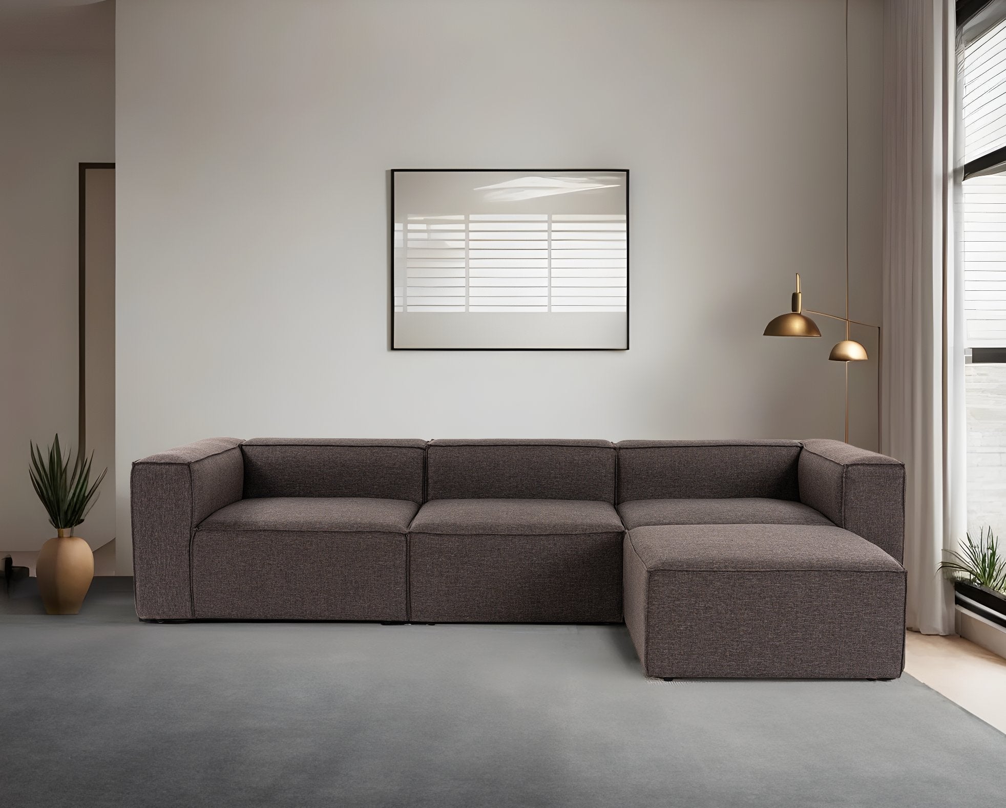 Elegáns és modern kialakításával sarokkanapénk biztosan bármelyik szoba középpontjába kerül. A sötétbarna szín kifinomultságot és eleganciát kölcsönöz, könnyedén illeszkedik bármilyen belsőépítészeti dekorációhoz. A 100%-os vászonszövet luxust és tartósságot sugároz, biztosítva, hogy ez a kanapé még évekig időtálló darab maradjon otthonában.