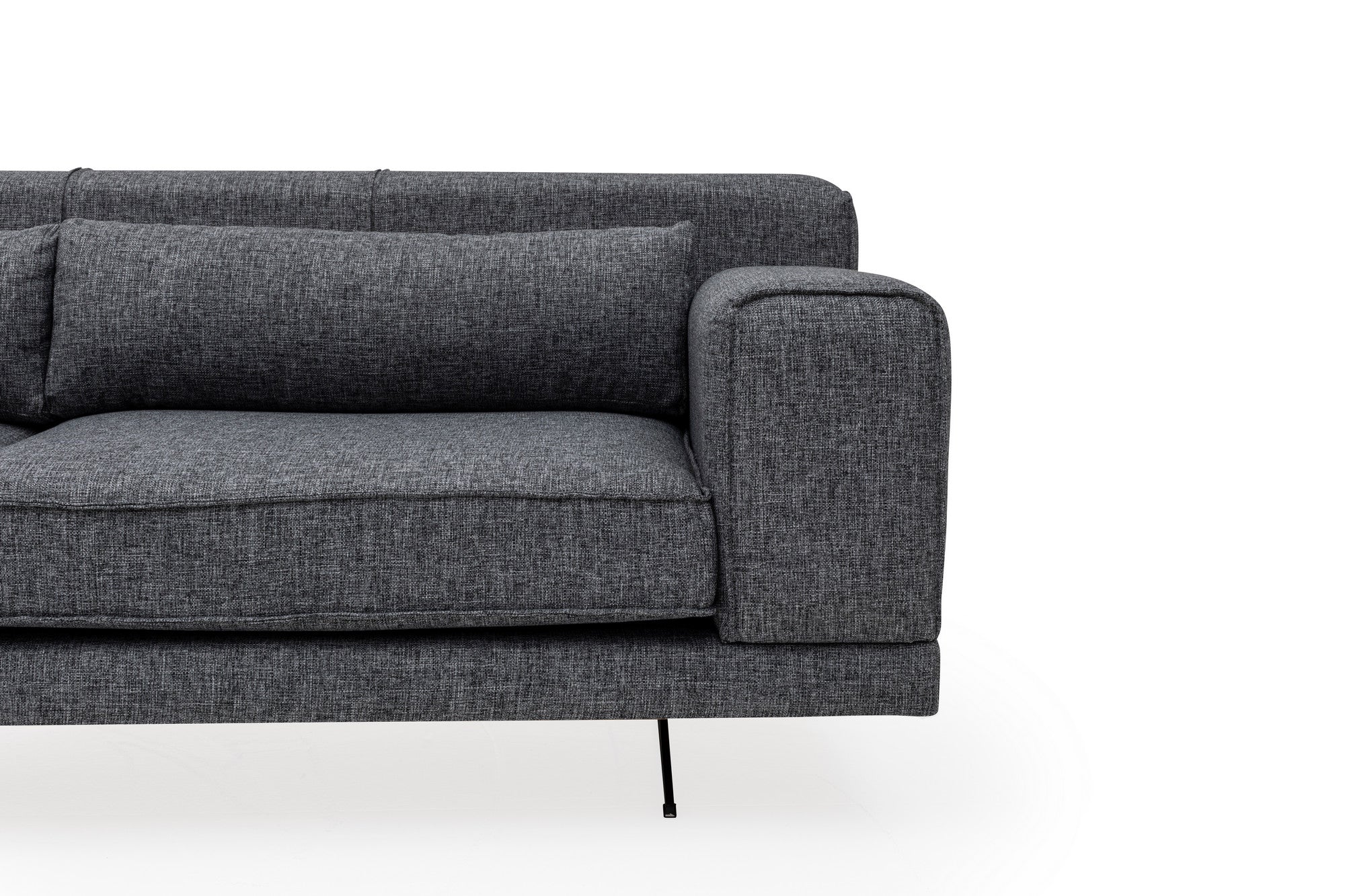 A sarokkanapénk elegáns és modern kialakítását a matt fekete fémlábak egészítik ki, egy csipetnyi ipari és skandináv bájt kölcsönözve terének. A szárazon tisztítható szövet könnyű karbantartást biztosít, így ez a kanapé praktikus választás az elfoglalt háztartásokban.