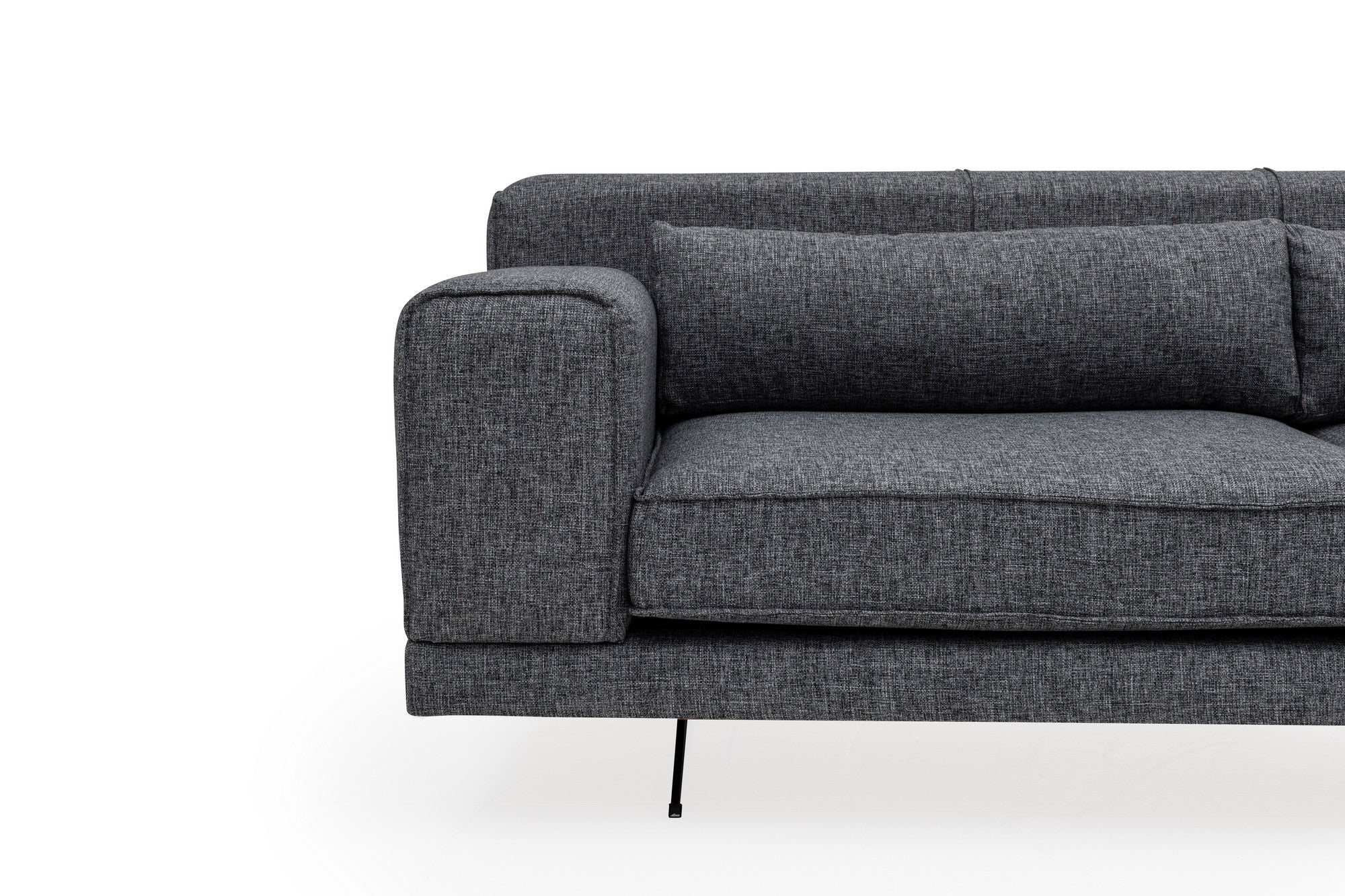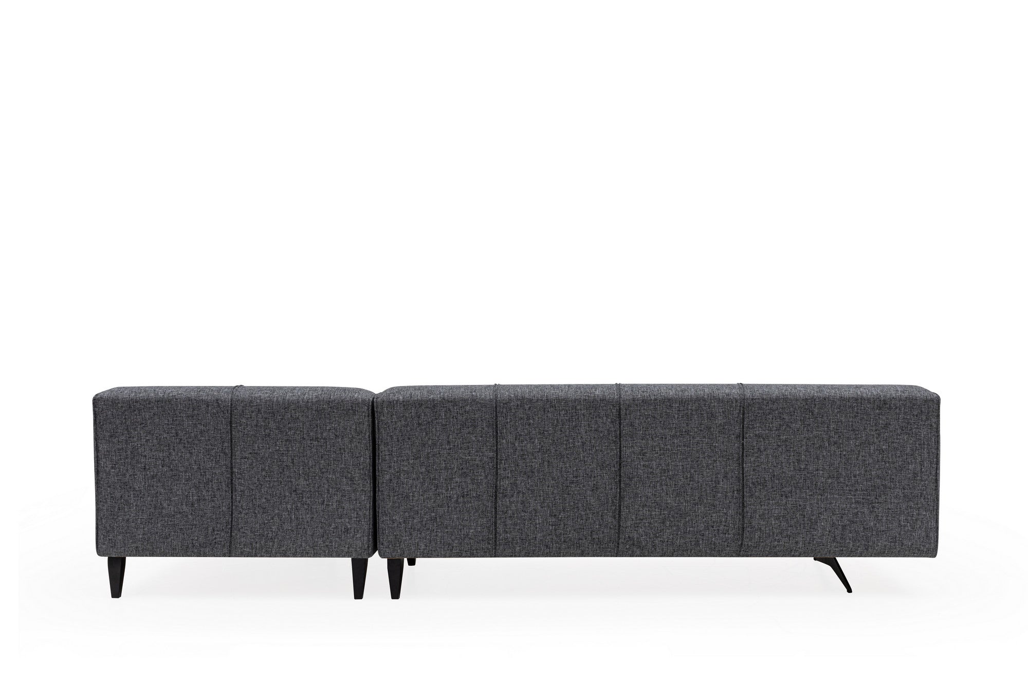Ennek a sarokkanapénak az elegáns és modern kialakítása könnyedén feldobja bármelyik szoba stílusát. Az egyszínű antracitszürke szín egy csipetnyi kifinomultságot kölcsönöz, így tökéletes kiegészítője bármilyen ipari vagy skandináv ihletésű dekorációnak.