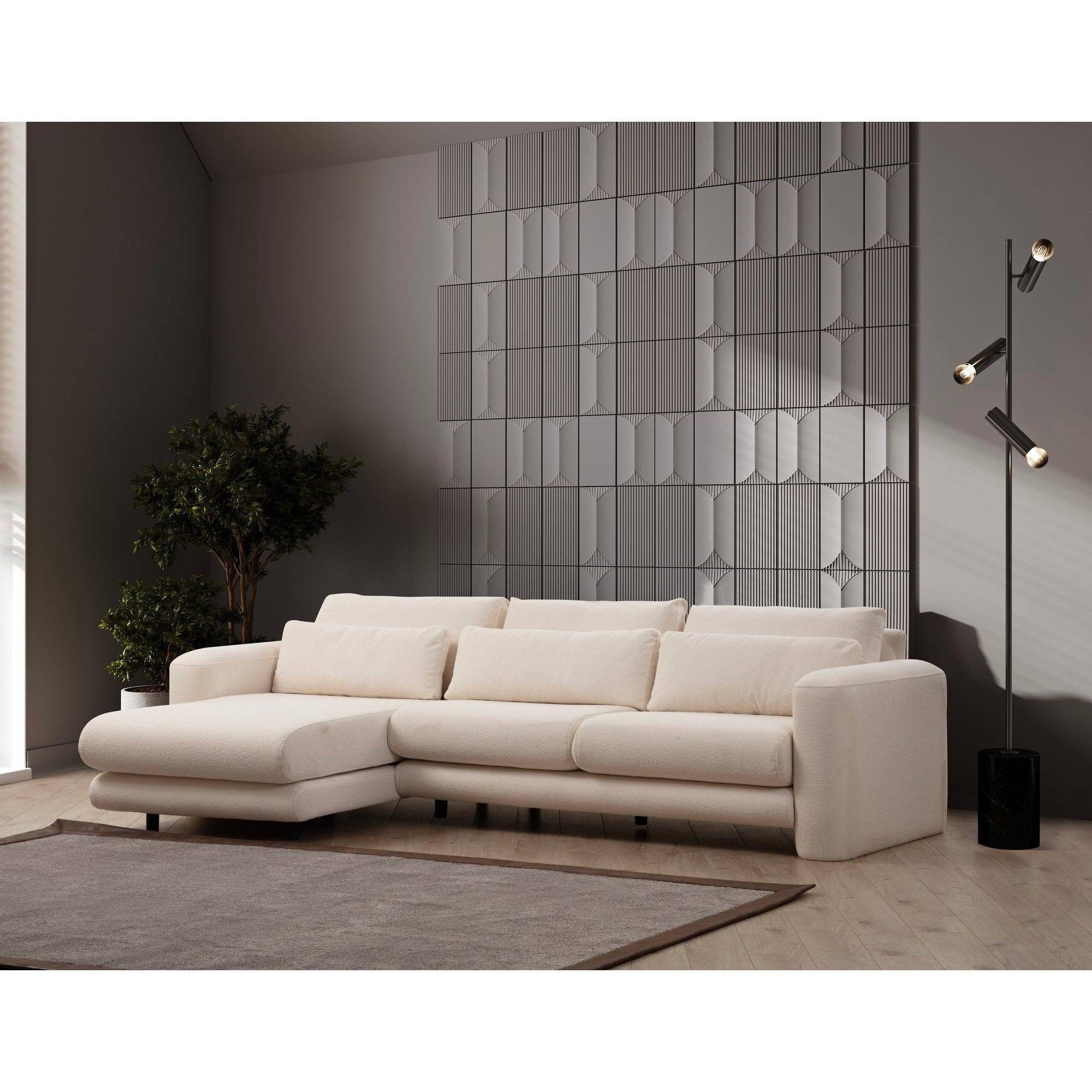 A sarokkanapénk nem csak a kényelemről szól, hanem egy olyan statement darab is, amely feldobja nappalijának stílusát. A kanapé elegáns kialakítása és krémszínű(ek) könnyedén illeszkedik bármilyen enteriőrbe, és egy csipetnyi kifinomultságot és eleganciát kölcsönöz helyiségének.