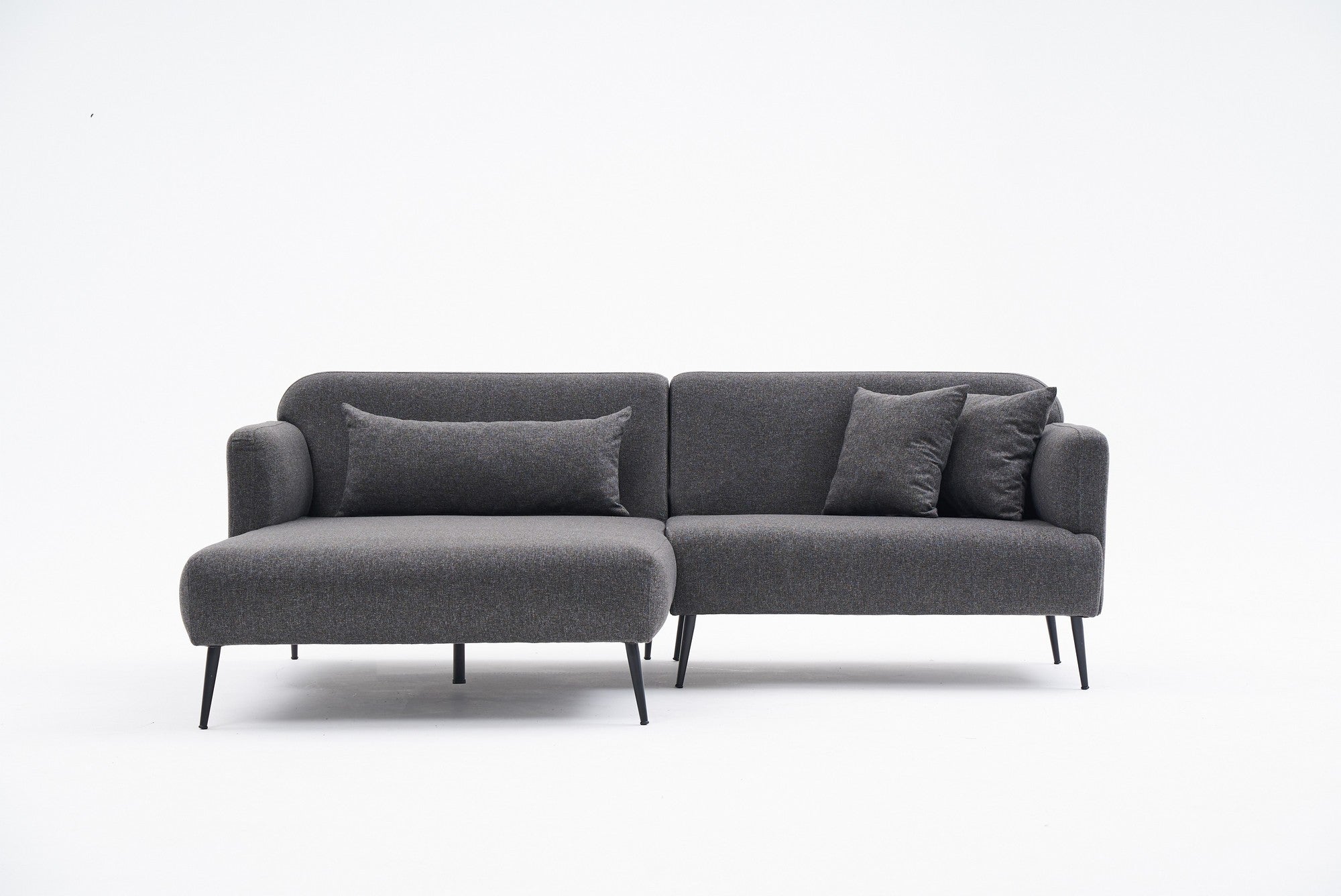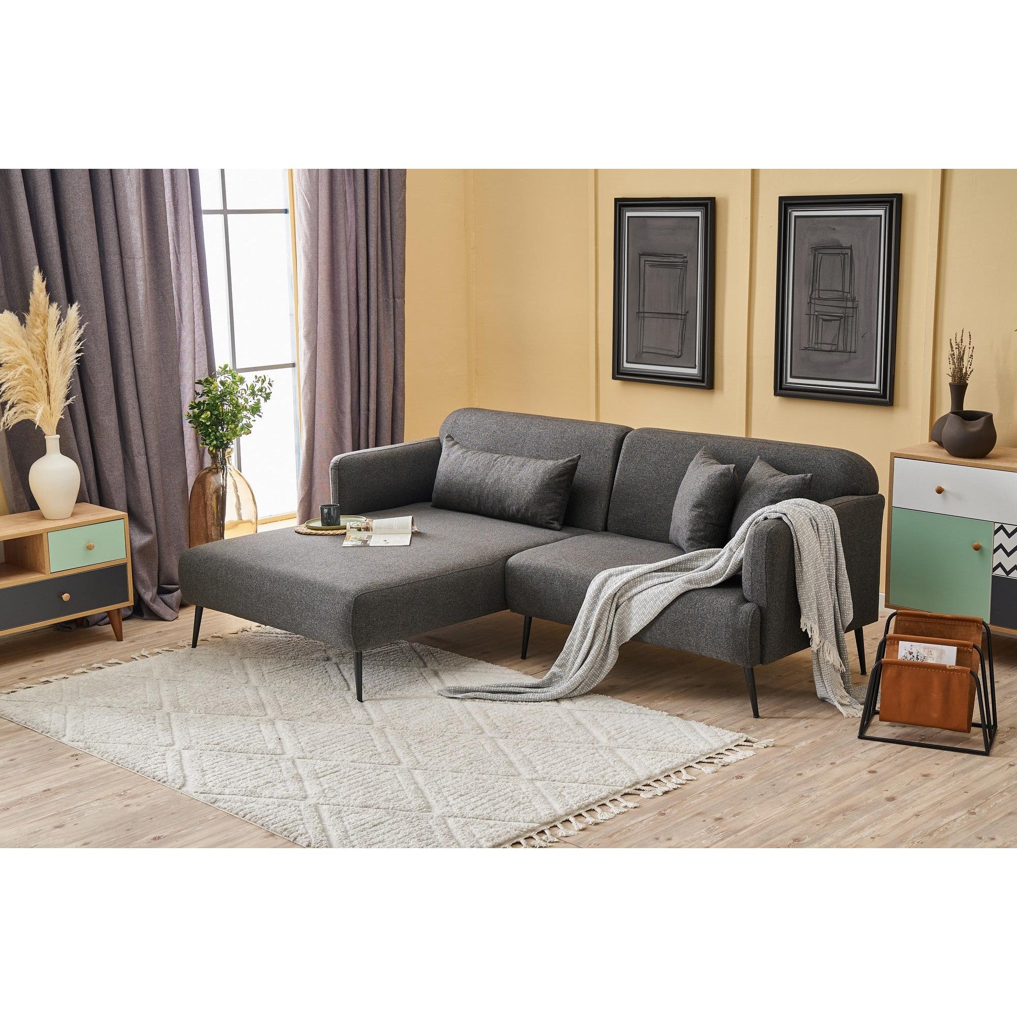 Ennek a sarokkanapénak a karcsú kialakítását fekete fémlábak egészítik ki, amelyek kortárs hangulatot kölcsönöznek bármely helyiségnek. A nagyvonalú, 250 cm x 86 cm x 100 cm-es méretek bőséges ülőhelyet biztosítanak Önnek és szeretteinek. A kanapé könnyen átalakítható 250 cm x 160 cm-es tágas ággyá is, így ideális éjszakai vendégek vagy lusta hétvégi lazuláshoz.