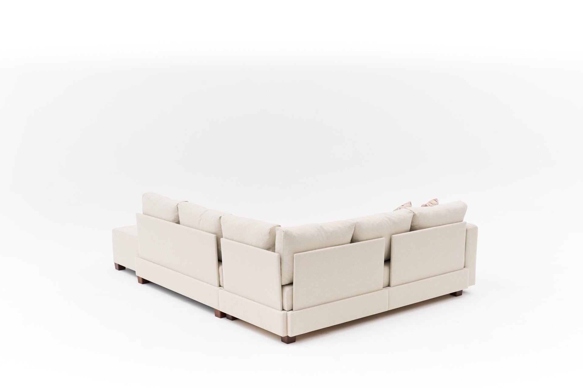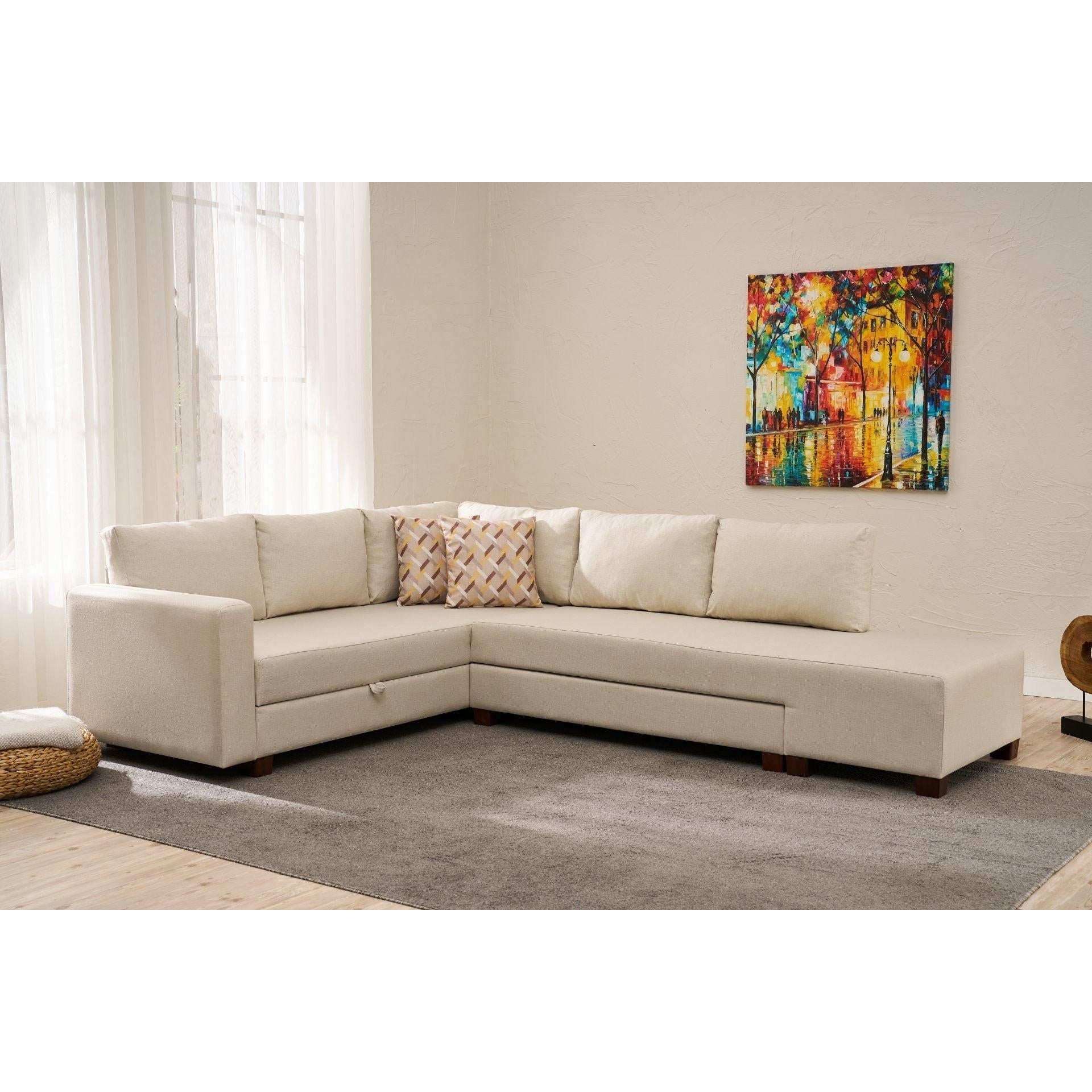 Ez a 280 cm széles, 83 cm magas és 210 cm mély sarokkanapé-ágy bőséges ülőhelyet biztosít Önnek és szeretteinek. A krémszínű szín eleganciát kölcsönöz bármely helyiségnek, így tökéletes központi eleme lehet nappalijának vagy vendégszobájának.