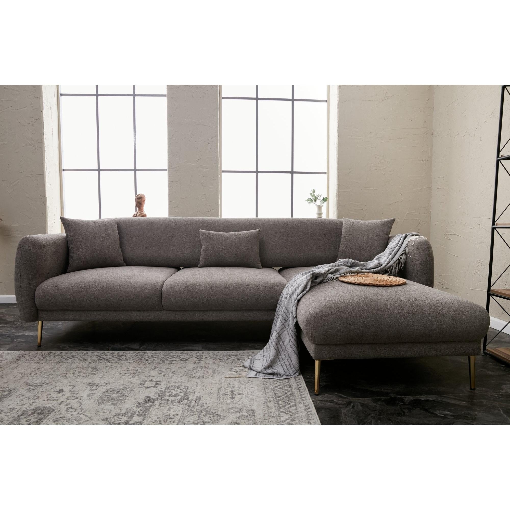 Karcsú és modern kialakításával sarokkanapé-ágyunk könnyedén illeszkedik bármilyen belsőépítészetbe, legyen az kortárs vagy hagyományos környezet. Az egyszínű szürke szín egy csipetnyi kifinomultságot kölcsönöz, míg az arany ékezetek egy csipetnyi csillogást és eleganciát visznek a térbe. A stílus és a funkcionalitás tökéletes kombinációja, így minden otthon kötelező darabja.