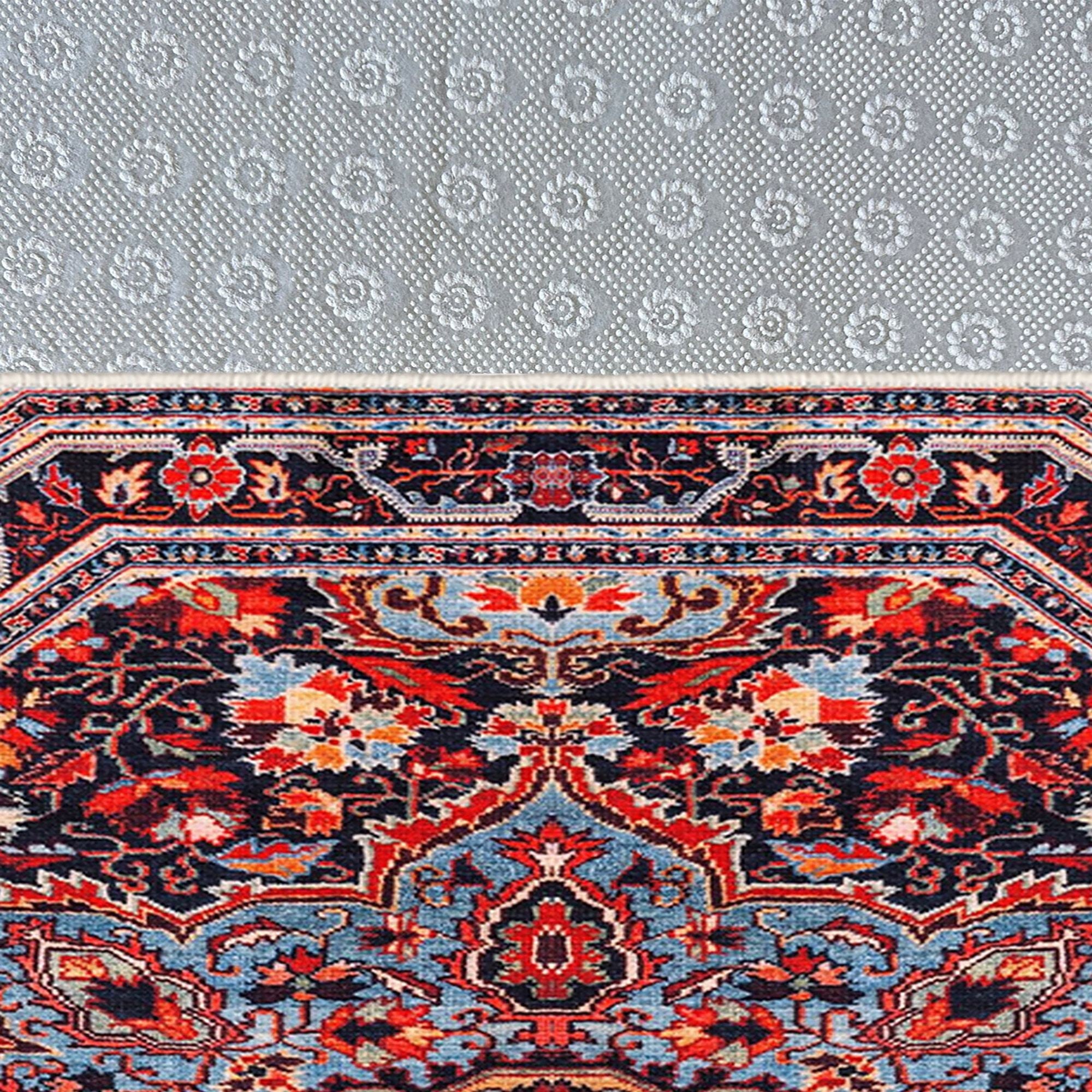 A 100% poliészterből készült szőnyeg nemcsak puha és kényelmes a láb alatt, hanem tartós és hosszú élettartamú is. A 650 gr/m²-es súlya plüssös érzetet biztosít, míg az 5 mm-es bolyhos magasság és a teljes vastagság további kényelmet és tartást biztosít. A csúszásmentes pvc aljzat és a pöttyös talp biztonságosan a helyén tartja a szőnyeget, így Ön nyugodt lehet.