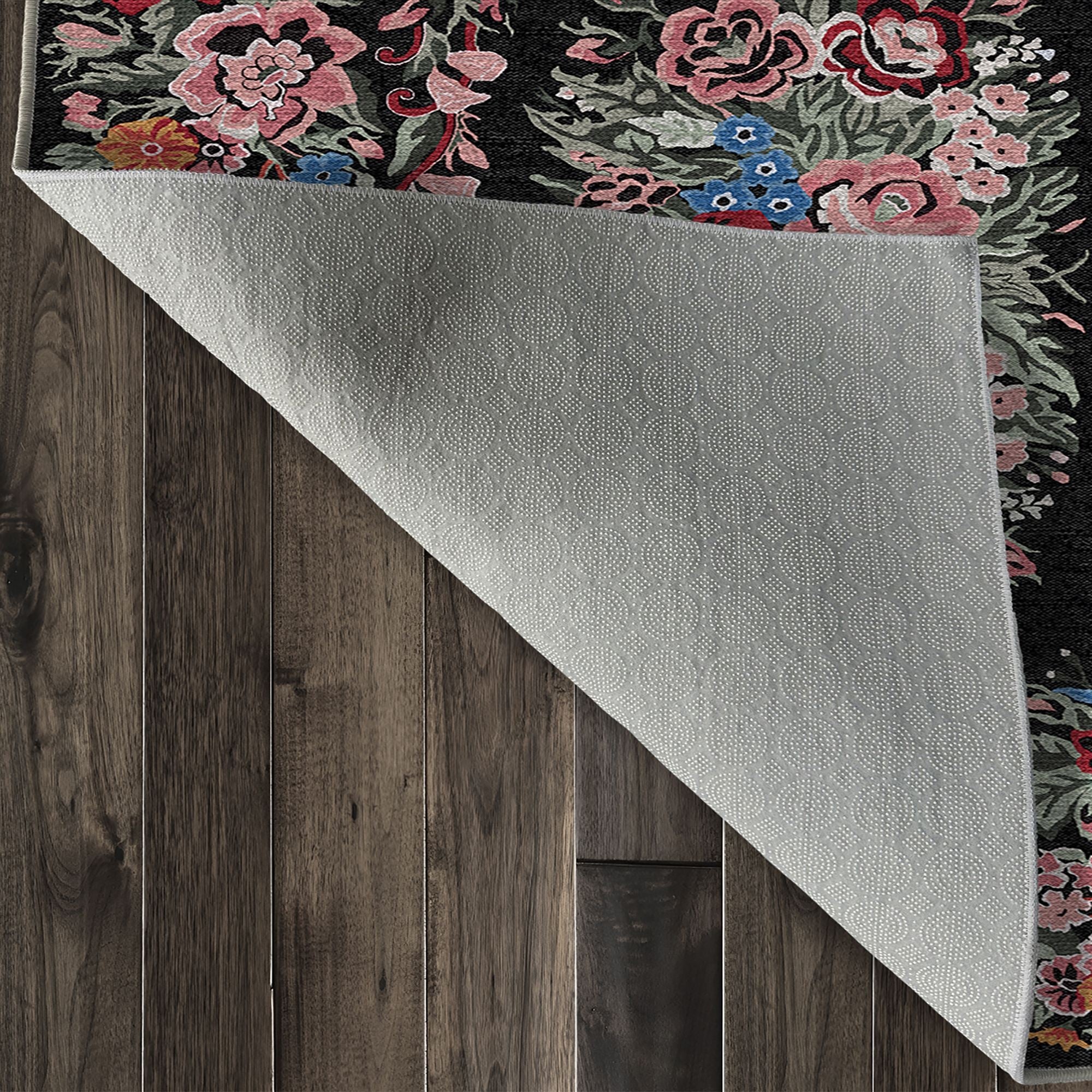 A szőnyeg elegáns fekete színe egy csipetnyi kifinomultságot kölcsönöz az otthoni dekorációnak, könnyedén illeszkedik bármilyen színösszeállításhoz. A pöttyös talp és a csúszásmentes pvc aljzat biztosítja, hogy a szőnyeg a helyén maradjon, biztonságot és stabilitást nyújtva Önnek és családjának.