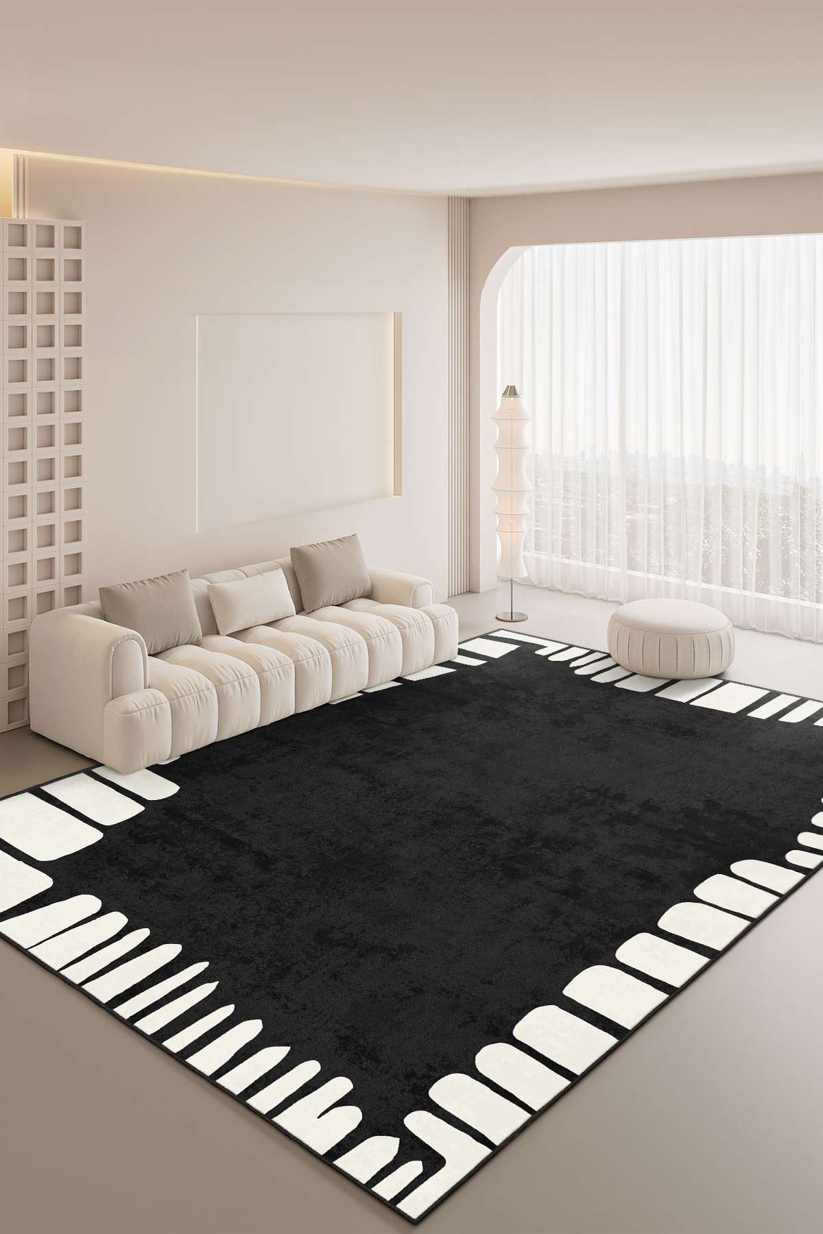 Adjon egy kis eleganciát otthonának ezzel a letisztult fekete szőnyeggel. A pöttyös alapdesign modern hangulatot kölcsönöz bármely helyiségnek, így tökéletes kiegészítője lehet nappalijának, hálószobájának vagy irodájának. Akár egy otthonos légkör megteremtésére, akár a dekoráció frissítésére vágyik, ez a szőnyeg biztosan lenyűgözi.