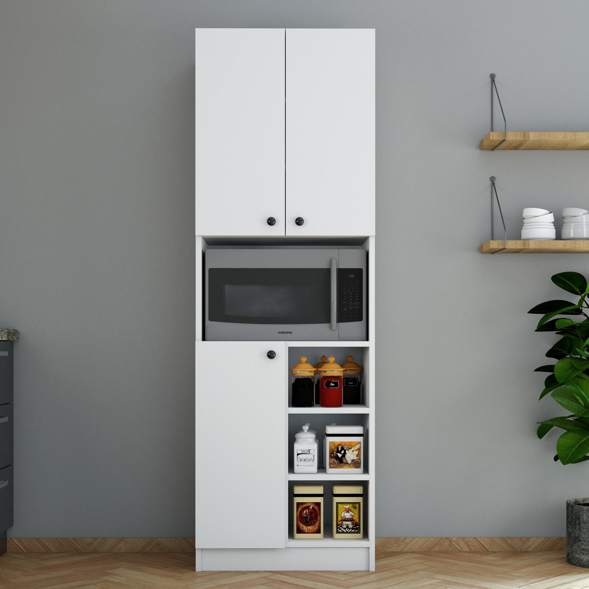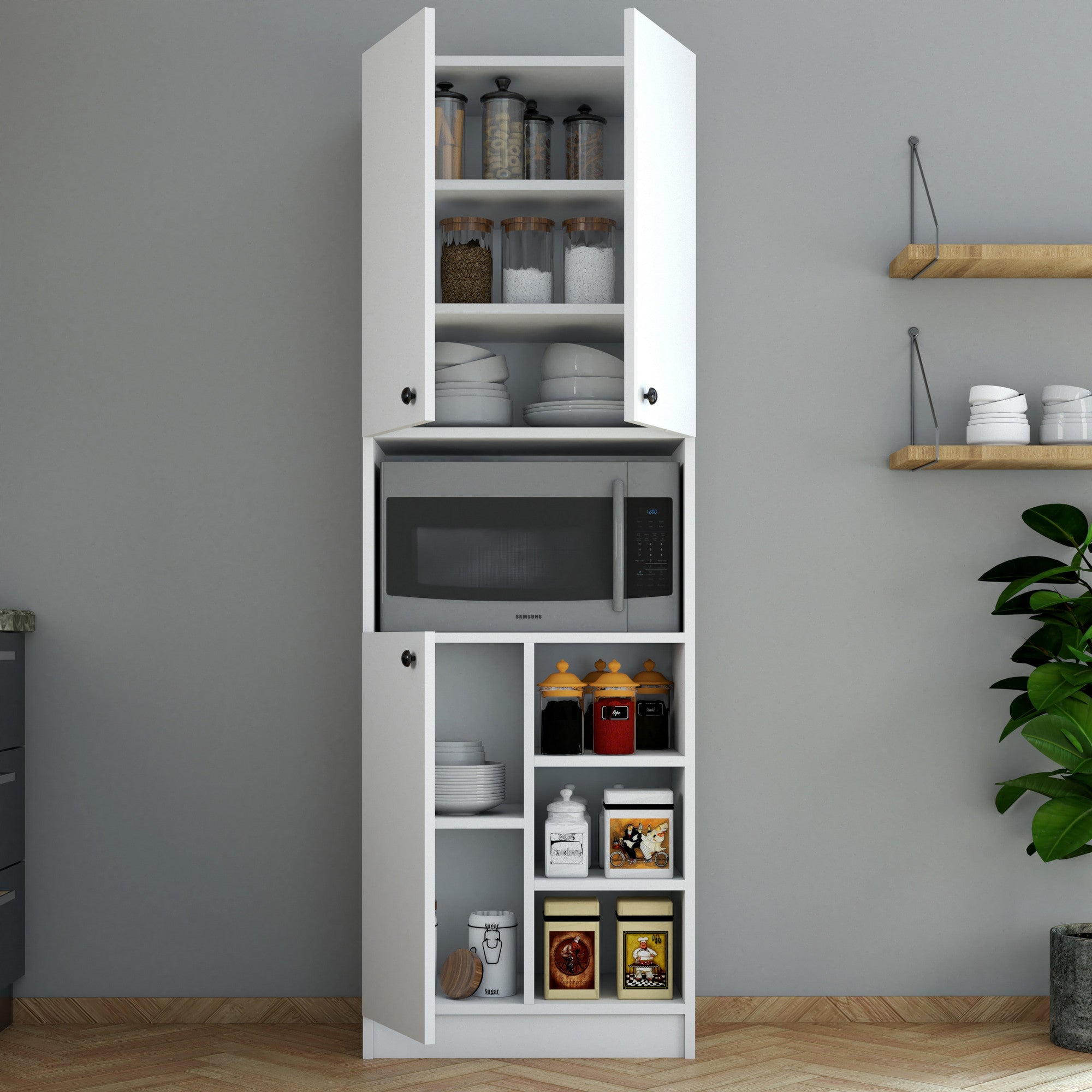 Ez a szekrény nemcsak bőséges tárolóhelyet biztosít, hanem a falra is rögzíthető a stabilitás érdekében. Ez tökéletessé teszi kis terekhez vagy olyan szobákhoz, ahol a padlófelület korlátozott.