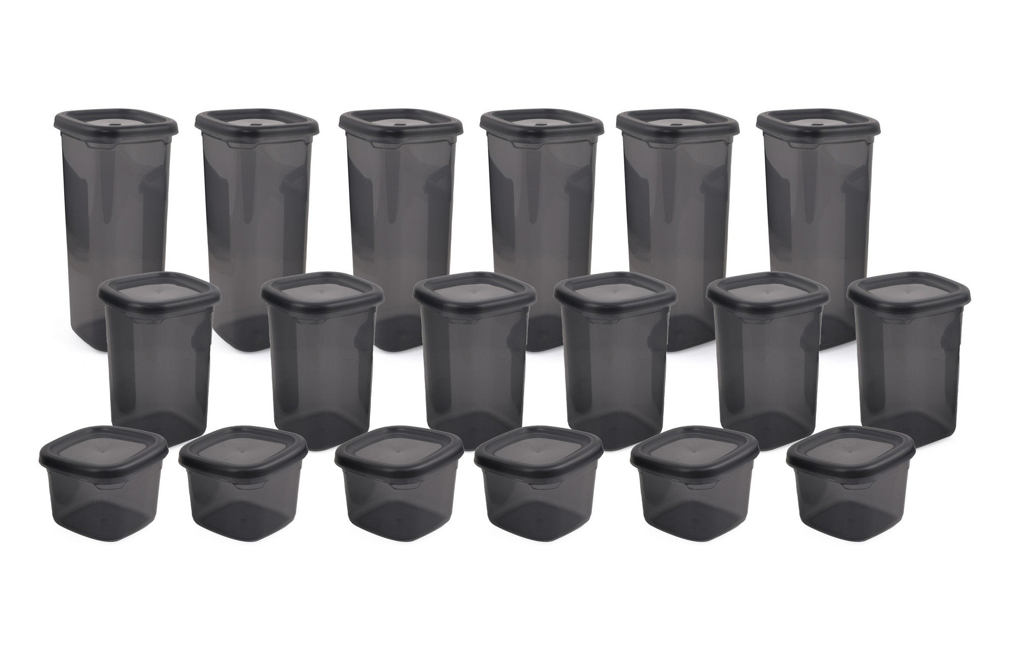 Ez a készlet három különböző méretet tartalmaz, hogy a legkülönbözőbb tárgyakhoz illeszkedjen. A 6 darab 11 x 11 x 23 cm / 1750 ml méretű darab tökéletesen alkalmas nagyobb tárgyak, például rágcsálnivalók, gabonapelyhek vagy akár kisebb konyhai eszközök tárolására. A 6 darab 11 x 11 x 16 cm / 1200 ml méretű darab ideális a fűszerek, ételízesítők vagy irodai kellékek rendszerezésére. Végül a 6 darab 11 x 11 x 7. 5 cm / 550 ml méretű darab kiválóan alkalmas ékszerek, kisebb kiegészítők vagy gyógyszerek tárolására.