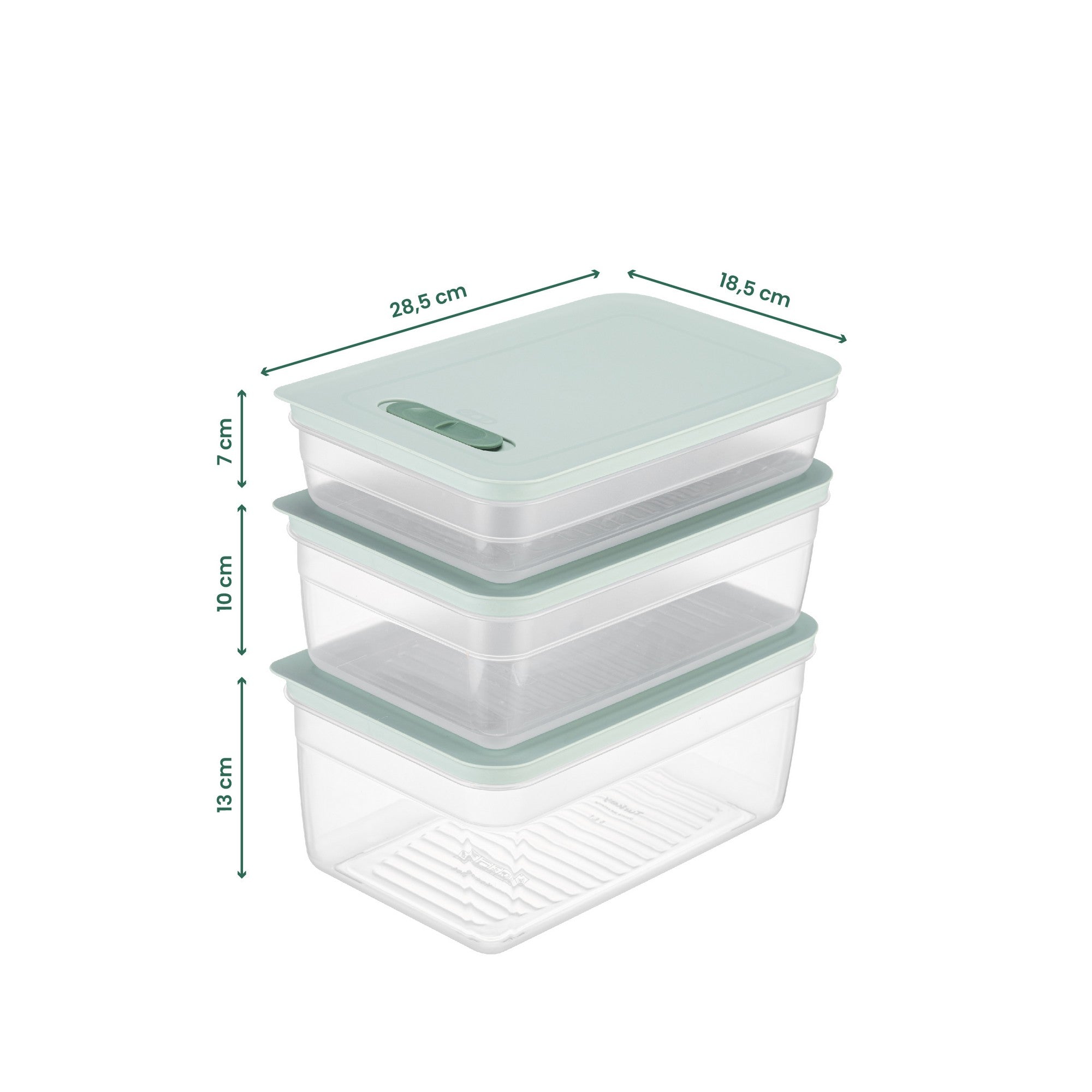 - Méretek: 18. 5 x 28. 5 x 7 cm (2500 ml), 18. 5 x 28. 5 x 10 cm (3800 ml), 18. 5 x 28. 5 x 13 cm (5000 ml)