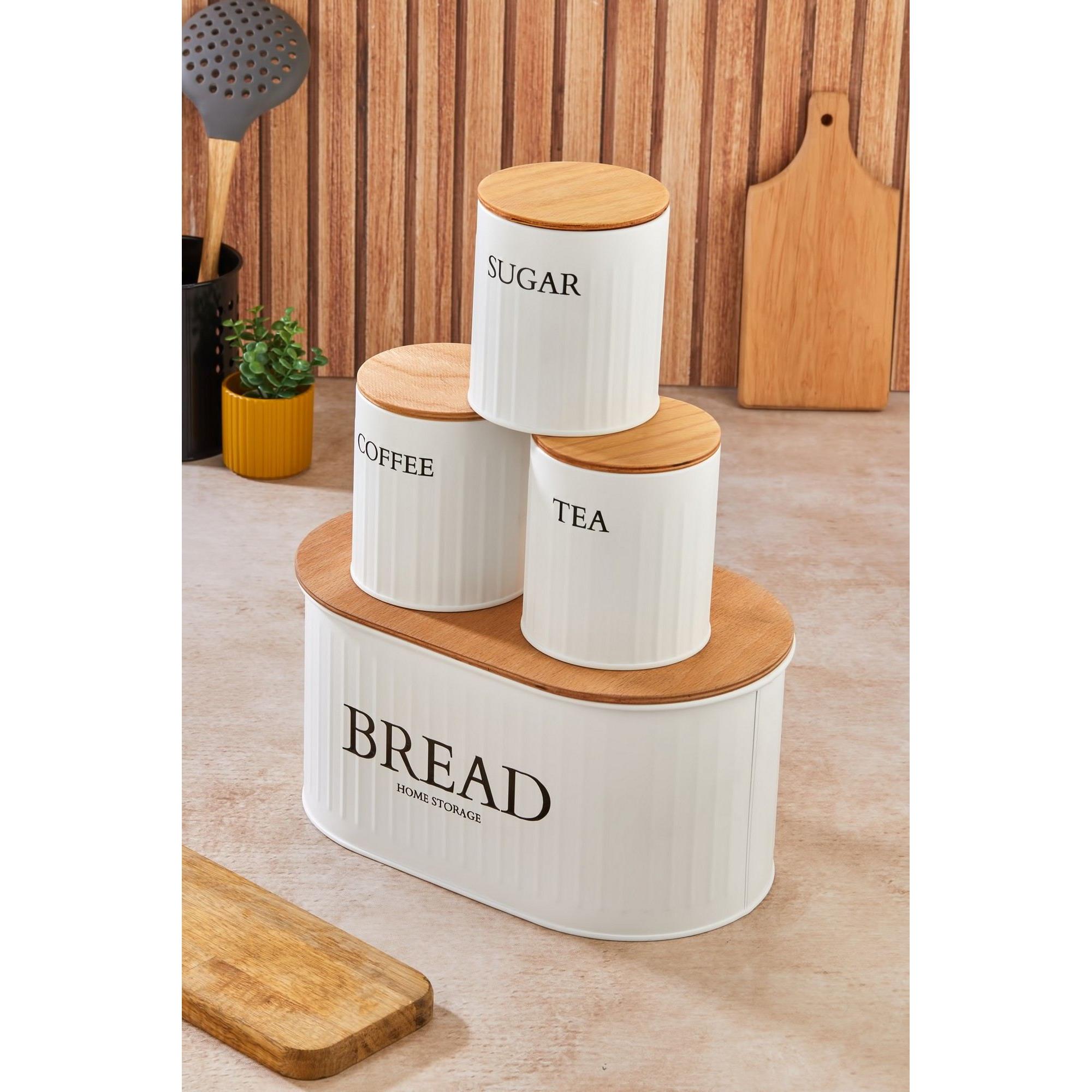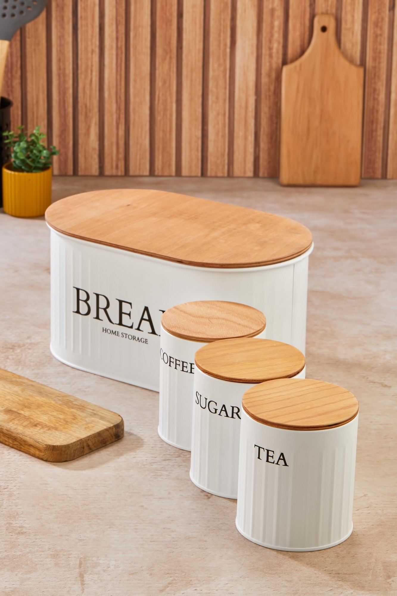 A kenyértartó, amelynek mérete 30 x 19 x 15 cm, tökéletes a kenyerek frissen tartására és a konyha rendezett megjelenésére. A három kisebb doboz, mindegyik 10 x 11 x 10 cm-es, ideális nassolnivalók, fűszerek vagy apró konyhai eszközök tárolására. A fa fedők eleganciát adnak a készletnek, így gyönyörű kiegészítője bármilyen konyhai dekorációnak.