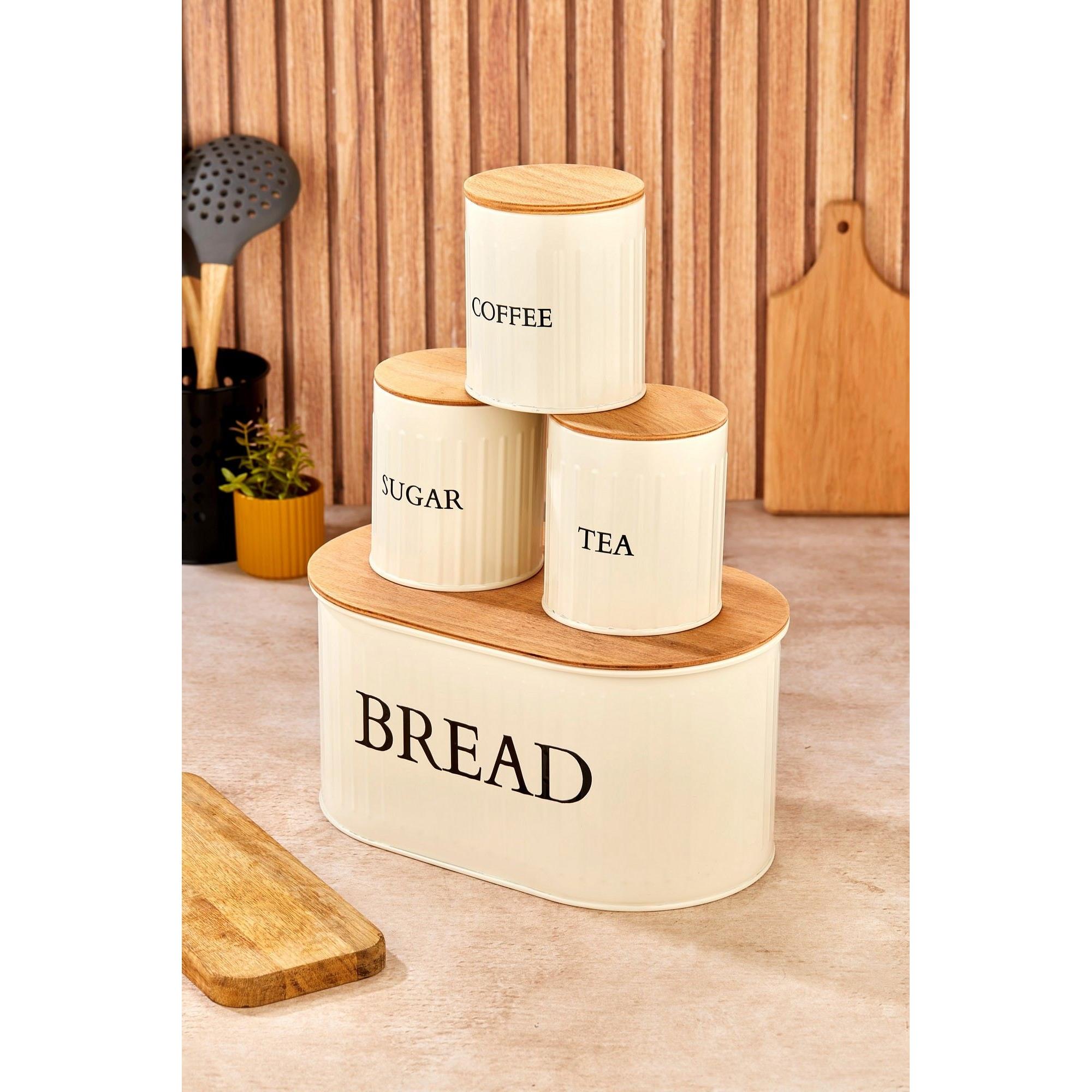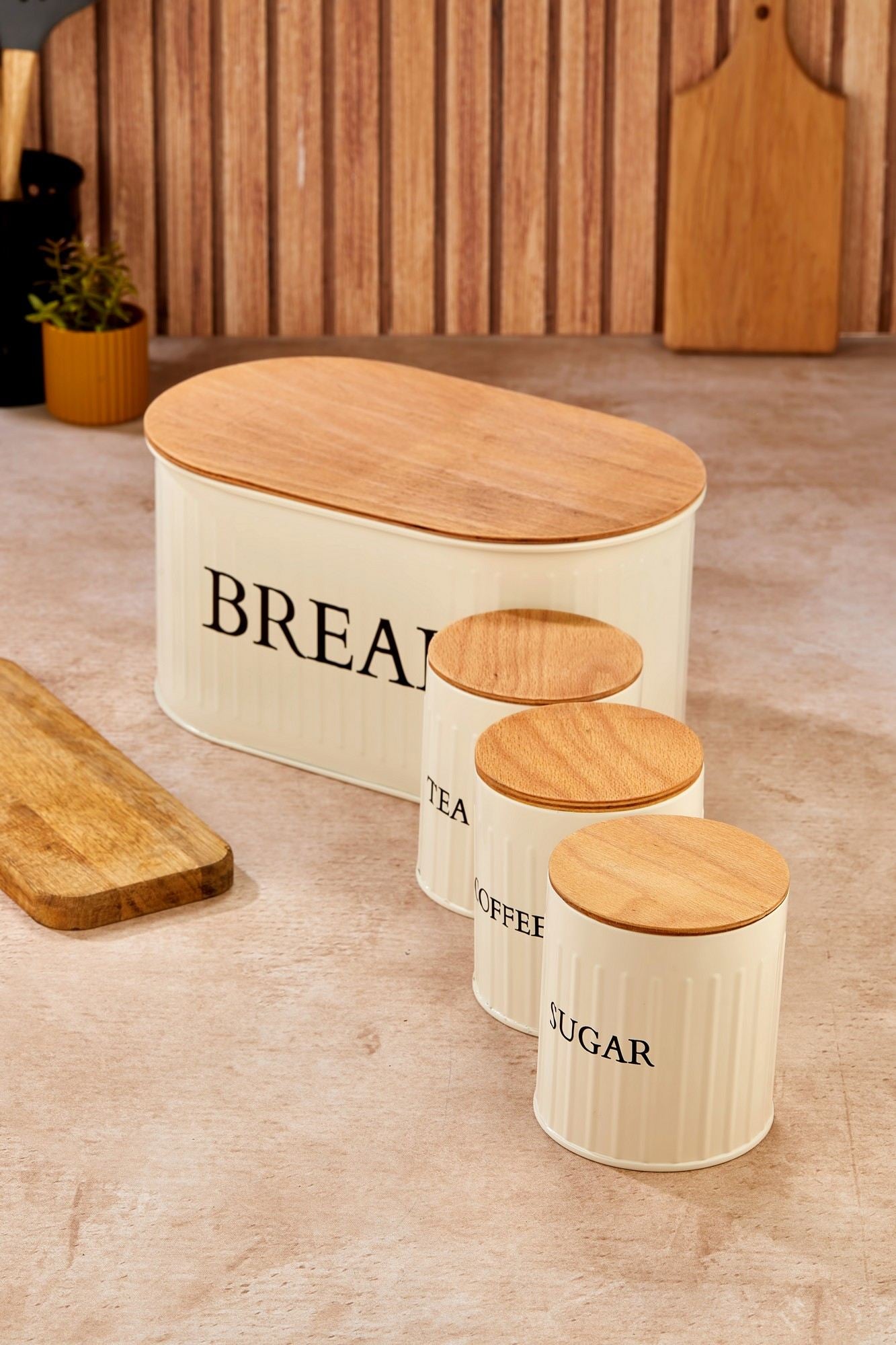 A 30 x 19 x 15 cm-es kenyérdobozzal és három 10 x 11 x 10 cm-es kisebb dobozzal ez a szett bőséges tárolóhelyet biztosít minden konyhai alapanyagod számára. A fa fedők melegséget és kifinomultságot adnak a letisztult fém dizájnhoz, így ezek a dobozok stílusos kiegészítői bármely konyhának.