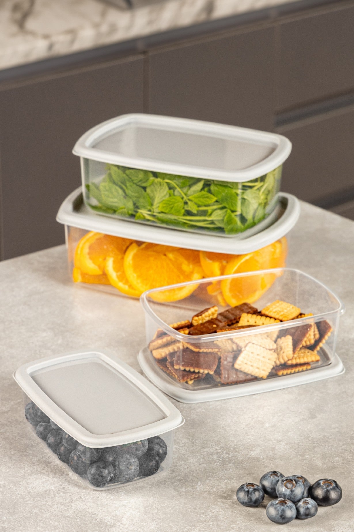 Ezek a dobozok nemcsak praktikusak, hanem stílusosak is. A karcsú szürke szín bármilyen dekorációt kiegészít, így sokoldalú kiegészítői lehetnek otthonának. Akár a konyhában, akár a fürdőszobában vagy az irodában használja őket, ezek a dobozok minden térben eleganciát kölcsönöznek.