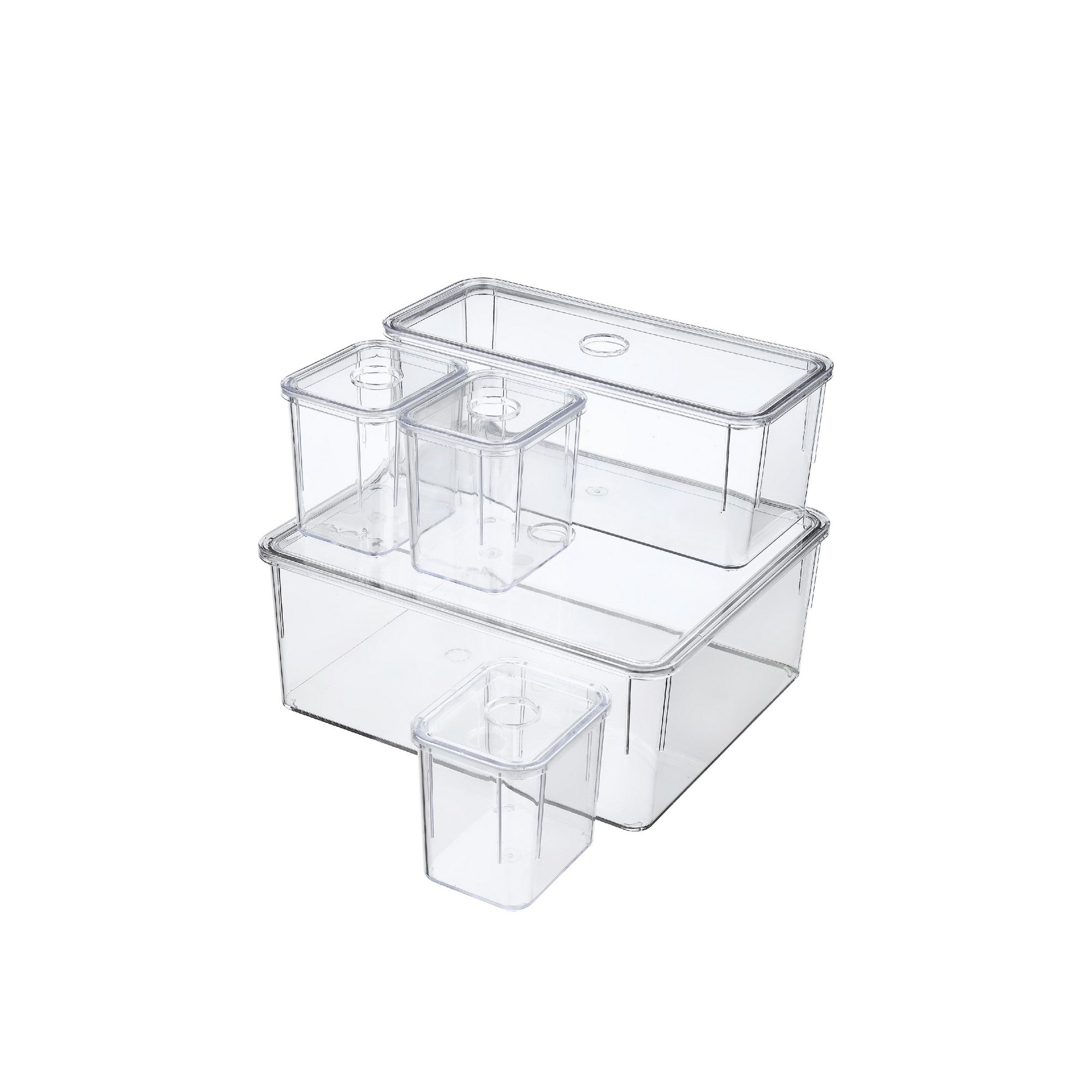 A készletben található különböző méretekkel könnyedén tárolhat bármit, a rágcsálnivalóktól kezdve az irodai kellékekig. Az átlátszó kialakításnak köszönhetően láthatja, mi van benne anélkül, hogy minden egyes dobozt ki kellene nyitnia, így kényelmes és hatékony a mindennapi használathoz.