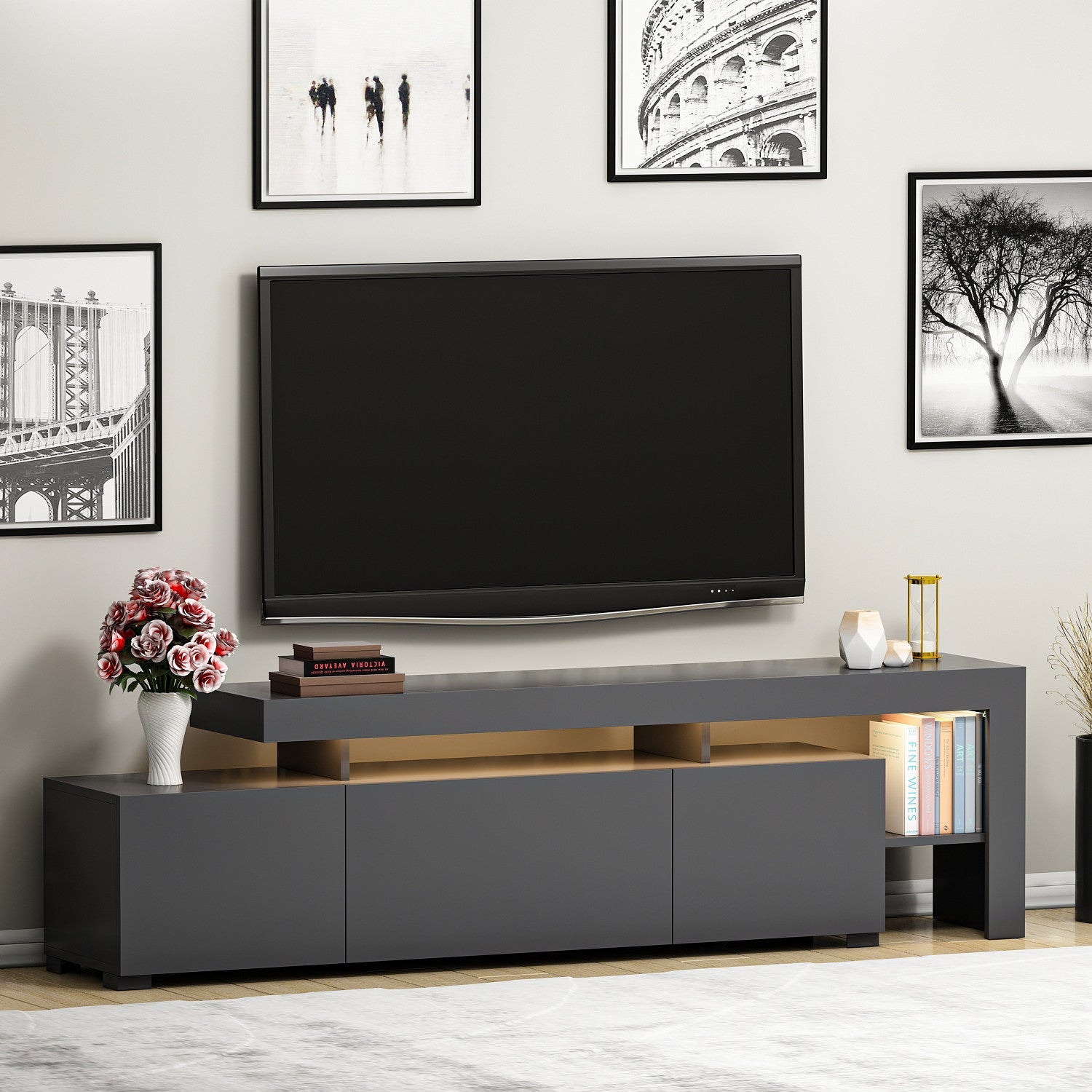 A számos polccal és egy tágas tv-polccal ez az állvány boséges tárolási lehetoséget biztosít a médiaszükségleteknek. A pvc szegélyléc kifinomult hatást kölcsönöz, miközben megvédi az állványt a kopástól és az elhasználódástól. Ezenkívül a kialakításban szereplo ledes fények magával ragadó hangulatot teremtenek, fokozva a nézés élményét.