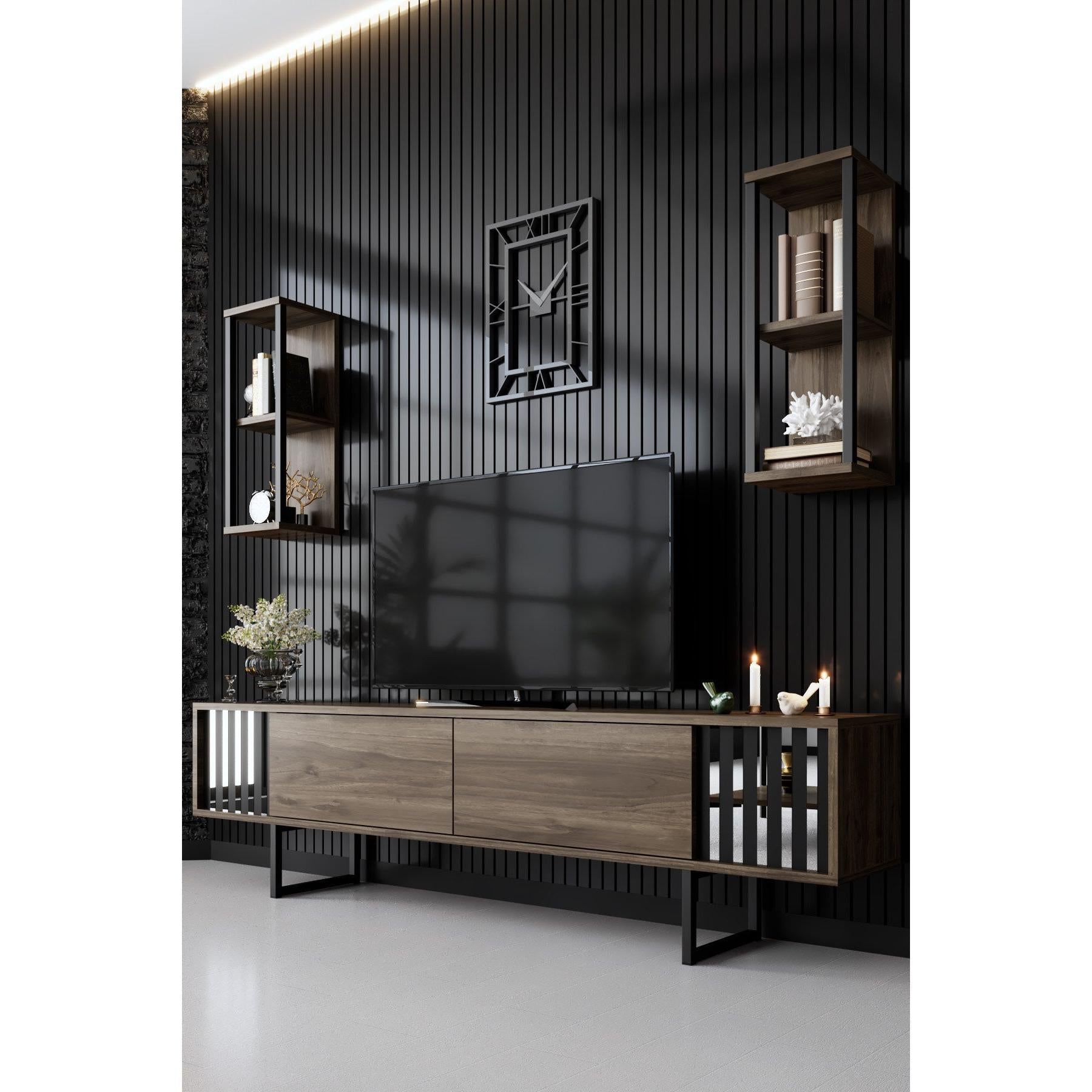 Elegáns kialakításával és a dió és fekete kifinomult színkombinációjával tv-egységünk tökéletes kiegészítője bármely modern otthonnak. Könnyedén illeszkedik bármilyen meglévő bútorhoz, és feldobja a nappali általános esztétikáját.
