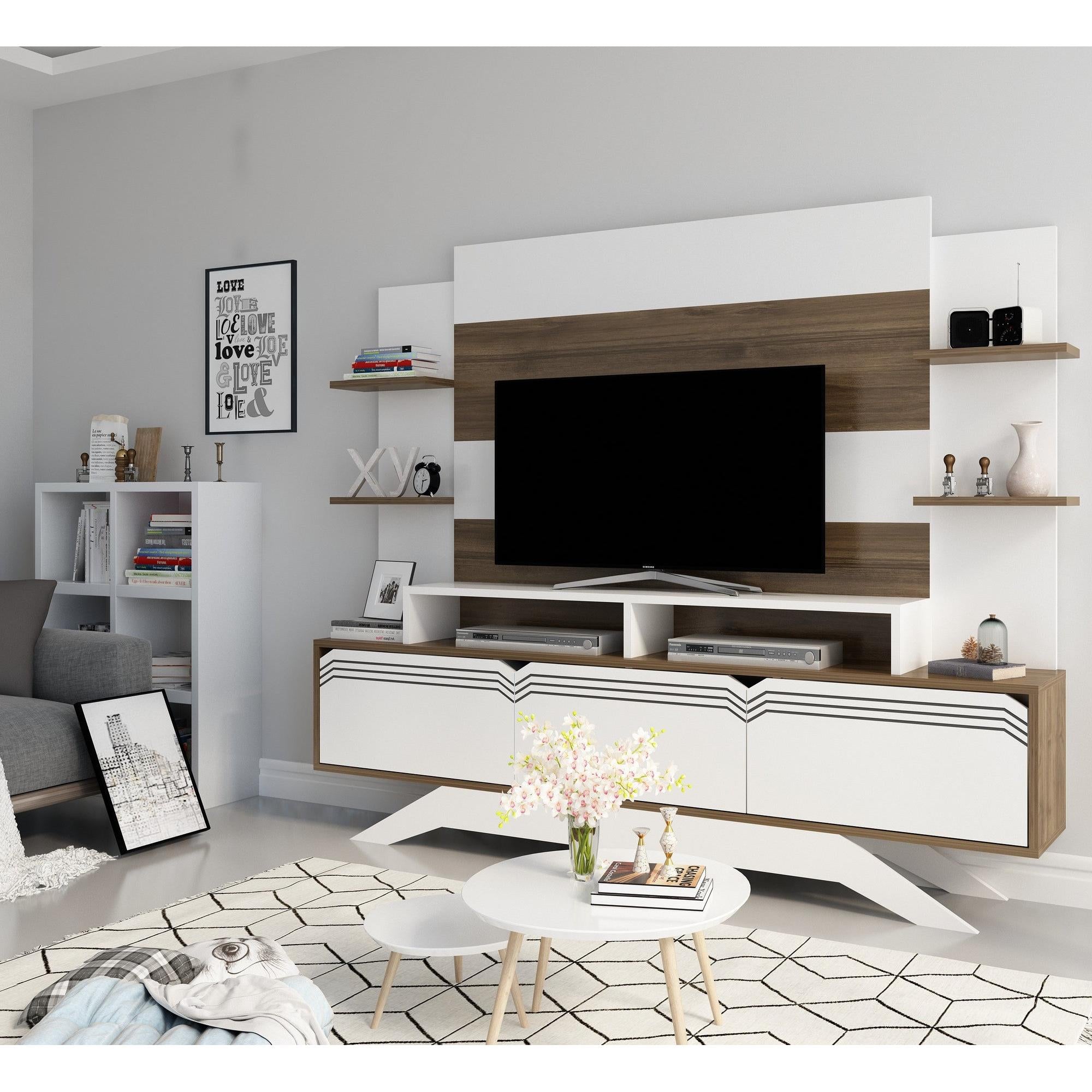 A legnagyobb precizitással készült, 100% melaminbevonatú forgácslapból készült tv egység biztosítja a tartósságot és a hosszú élettartamot. A diófa és a fehér színkombináció eleganciát és kifinomultságot kölcsönöz a lakótérnek, így a szoba középpontjává válik.