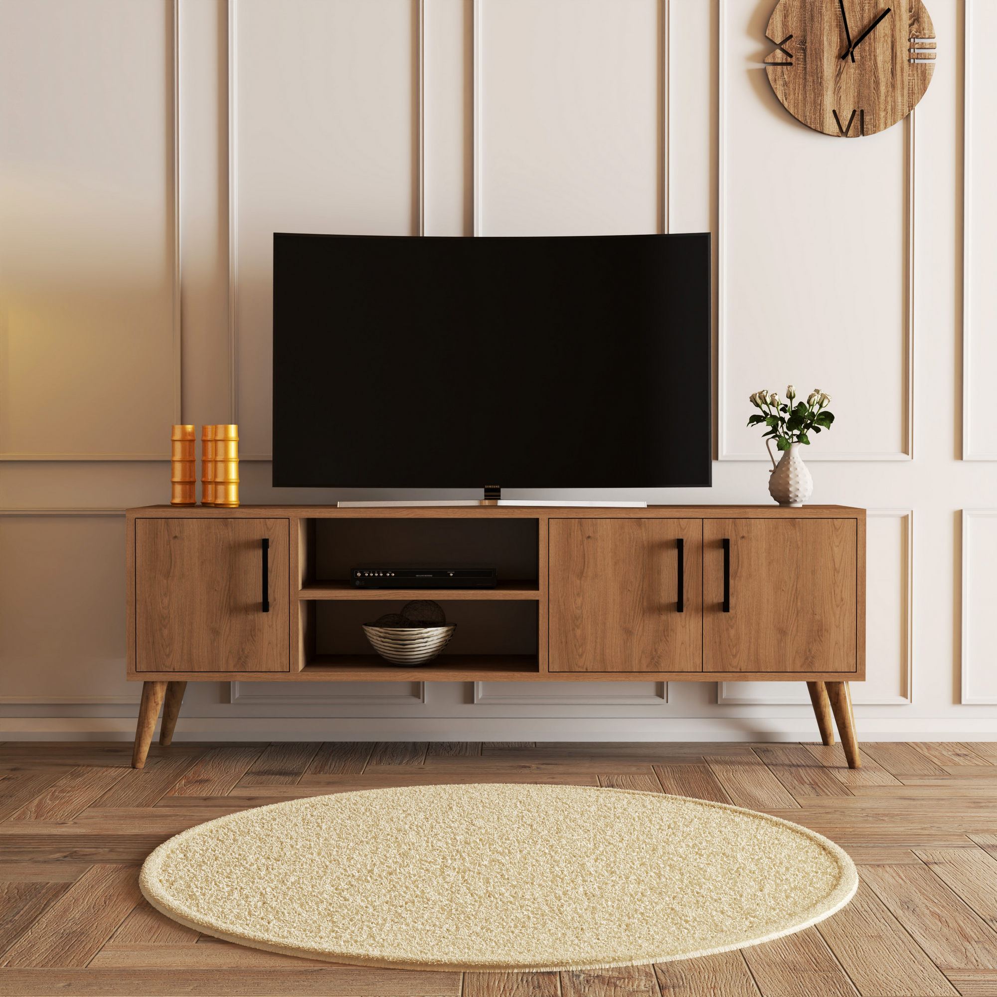 A 100% melaminbevonatú forgácslapból készült tv-állvány kivételes tartóssággal és hosszú élettartammal büszkélkedhet. A 18 mm-es vastagsága biztosítja a stabil szerkezetet, amely kiállja az idő próbáját. A falábak kifinomultságot kölcsönöznek, míg a tölgy szín melegséget és eleganciát sugároz.