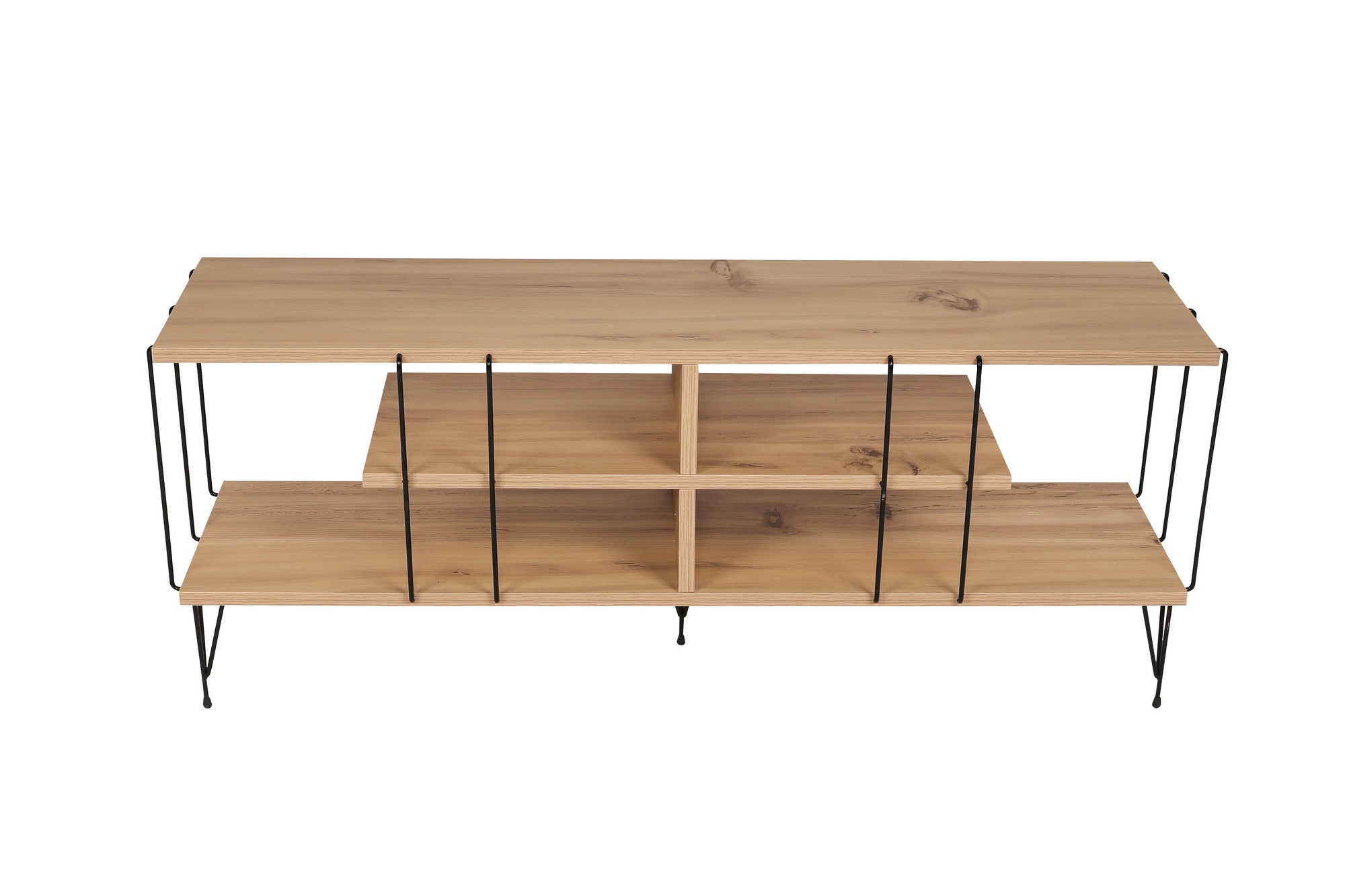 A számos polcnak köszönhetően ez a tv-állvány rengeteg tárolási lehetőséget kínál a médiaeszközök, játékkonzolok, dvd-k és egyebek számára. Tartsa rendezett és rendezetlen nappaliját, miközben a polcokon kedvenc dekorációs tárgyait is bemutathatja.