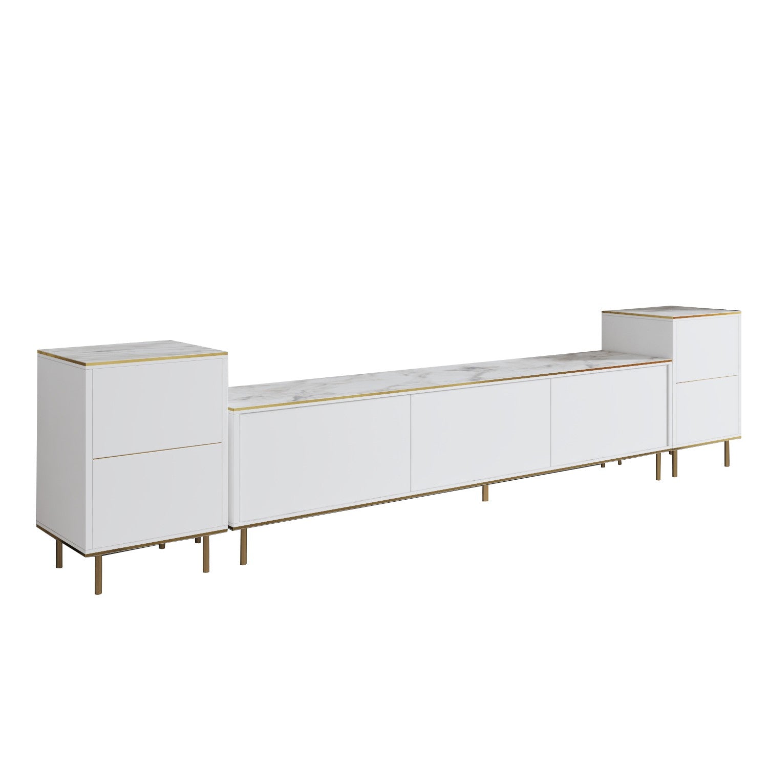 A legnagyobb precizitással és a részletekre való odafigyeléssel készült tv-egységünket úgy terveztük, hogy egy csipetnyi kifinomultságot kölcsönözzön otthonának. A fehér márvány és az arany színek kombinációja pazarságot sugároz, így ez egy olyan statement darab, amely lenyűgözi vendégeit.