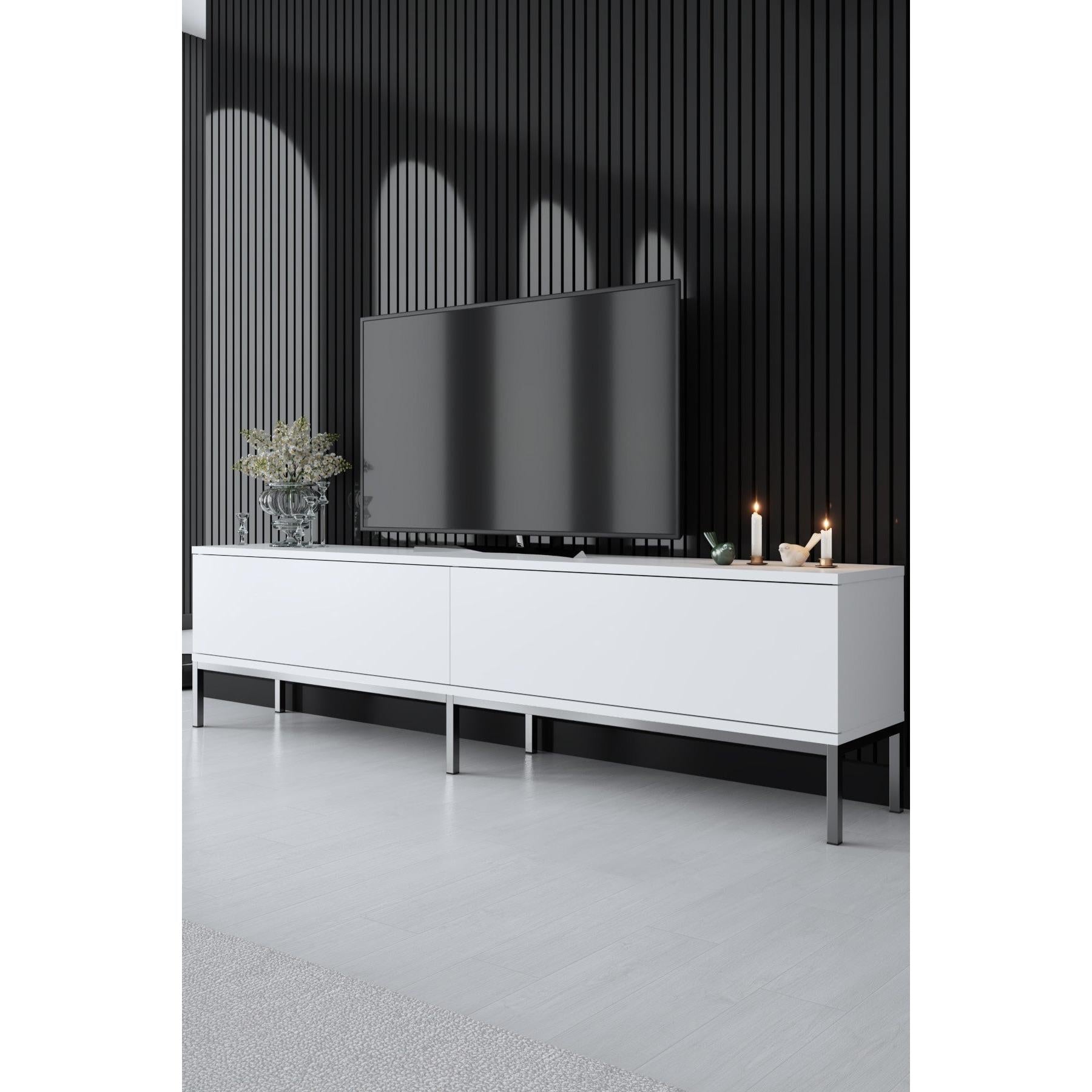 A fehér és az ezüst színek kombinációja kifinomultságot kölcsönöz ennek a tv-állványnak, így vizuálisan is élvezetes. A kontrasztos árnyalatok harmonikus egyensúlyt teremtenek, fokozva nappalijának általános esztétikáját. Tágas kialakításának köszönhetően bőséges tárolóhelyet kínál a médiaszükségleti cikkek számára, rendben tartva és rendszerezve a nappalit.