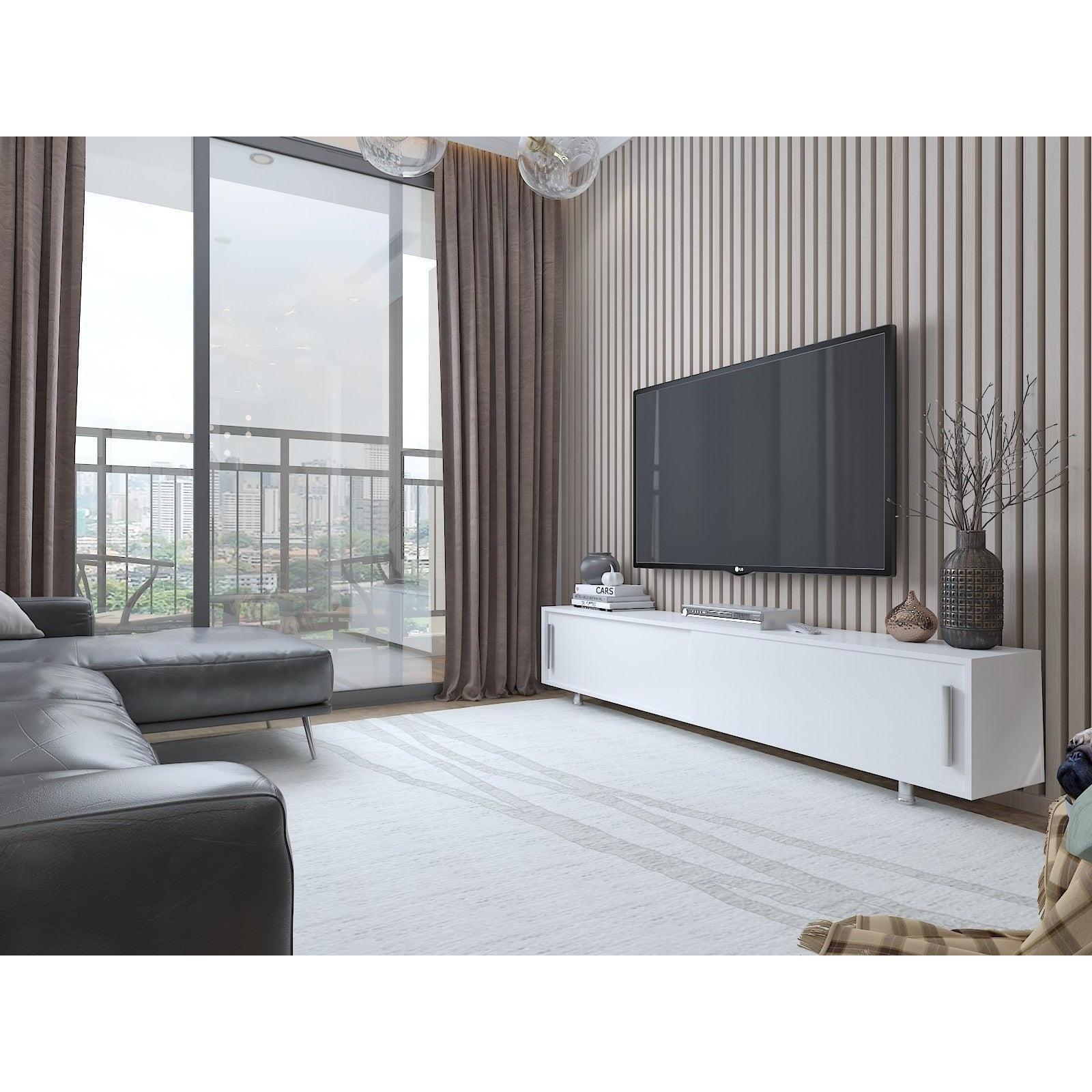 Az egyszínű és modern-újszerű koncepcióval rendelkező tv-állvány könnyedén illeszkedik bármilyen belsőépítészeti stílushoz. A letisztult fehér szín egy csipetnyi kifinomultságot kölcsönöz, így tökéletes kiegészítője lehet mind a kortárs, mind a hagyományos környezetnek.