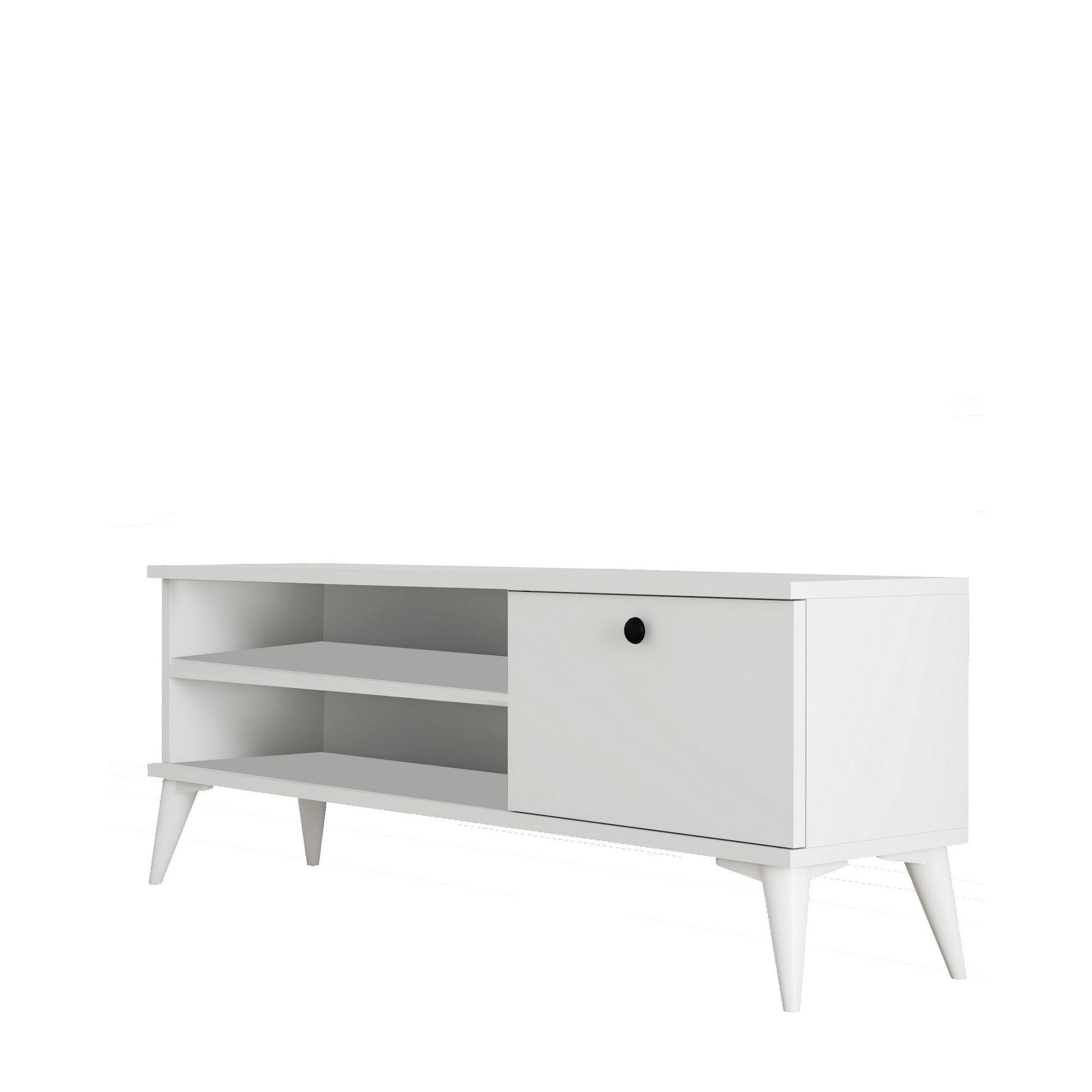 A 100% melaminbevonatú forgácslapból készült tv-állványunk nemcsak tartós, hanem eleganciát is sugároz. Egyszínu színe és bohém koncepciója bármelyik helyiséget kifinomulttá teszi, így tökéletes kiegészítoje lesz lakberendezésének.