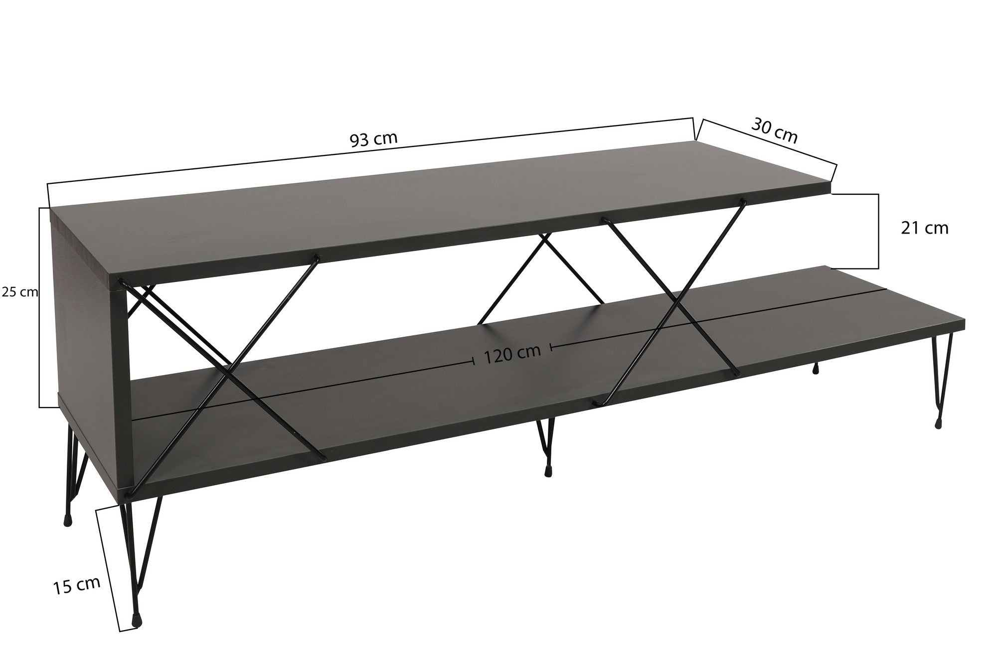 Az ipari ihletésű dizájnnal rendelkező tv-állványunk kifinomultságot kölcsönöz bármelyik szobának. A 100% melaminbevonatú forgácslap és a vaslábak kombinációja egy erős és tartós szerkezetet hoz létre, amely hosszú éveken át kitart. Az antracit szín kortárs és elegáns jelleget kölcsönöz, így tökéletes kiegészítője bármely modern lakberendezésnek.