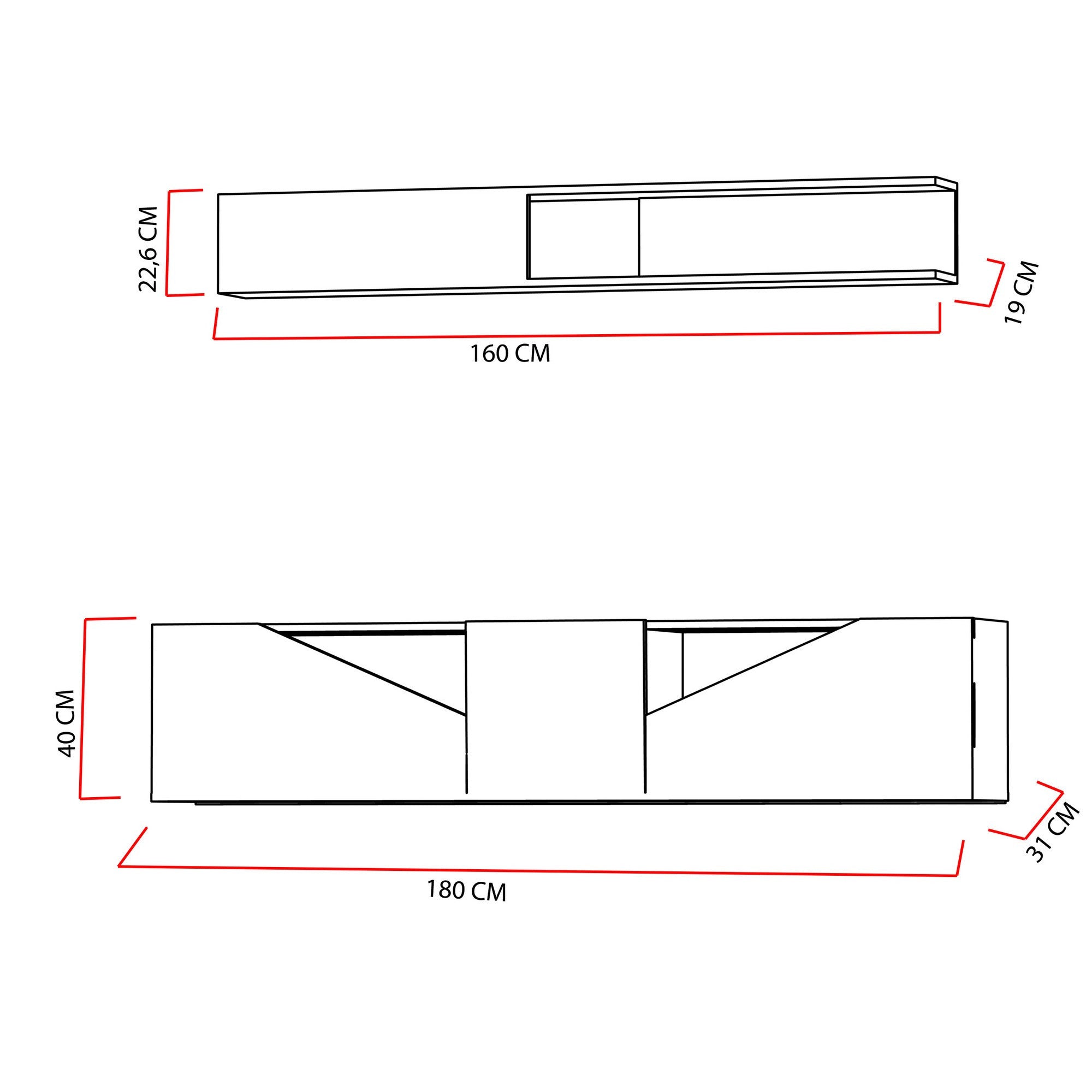 - TV egység mérete: A TV egység mérete: Szélesség: 180 cm, Magasság: 40 cm, Mélység: 31 cm.